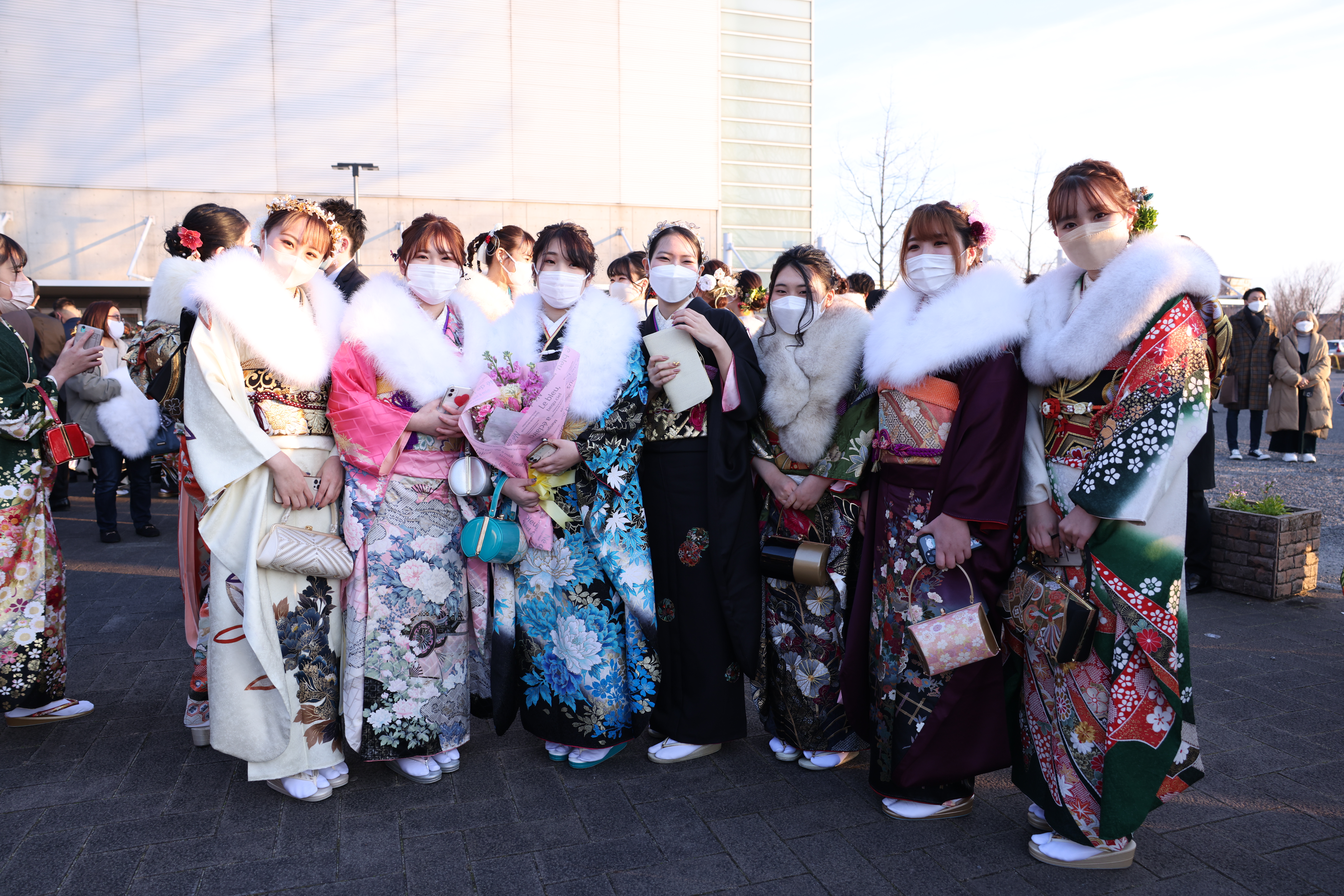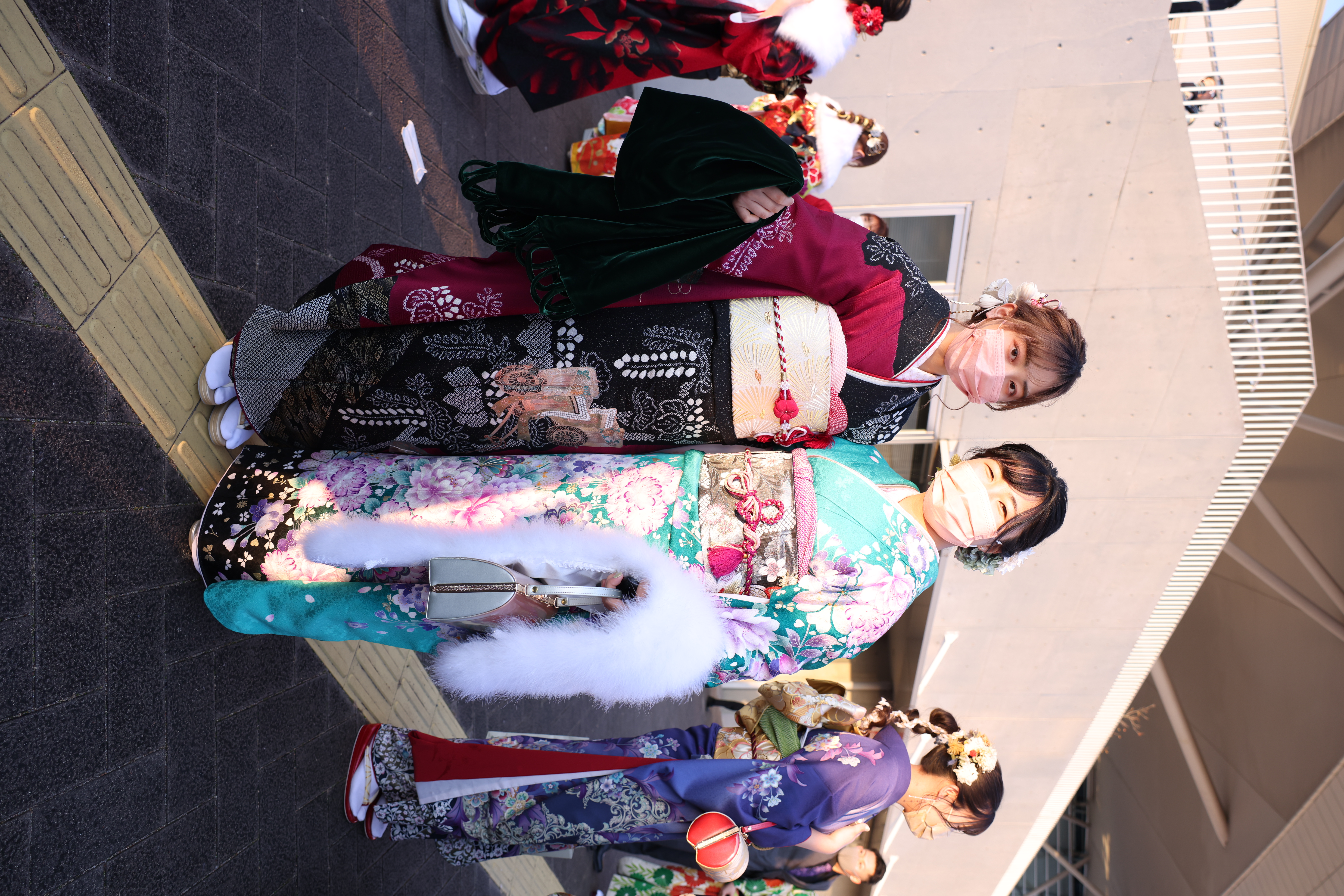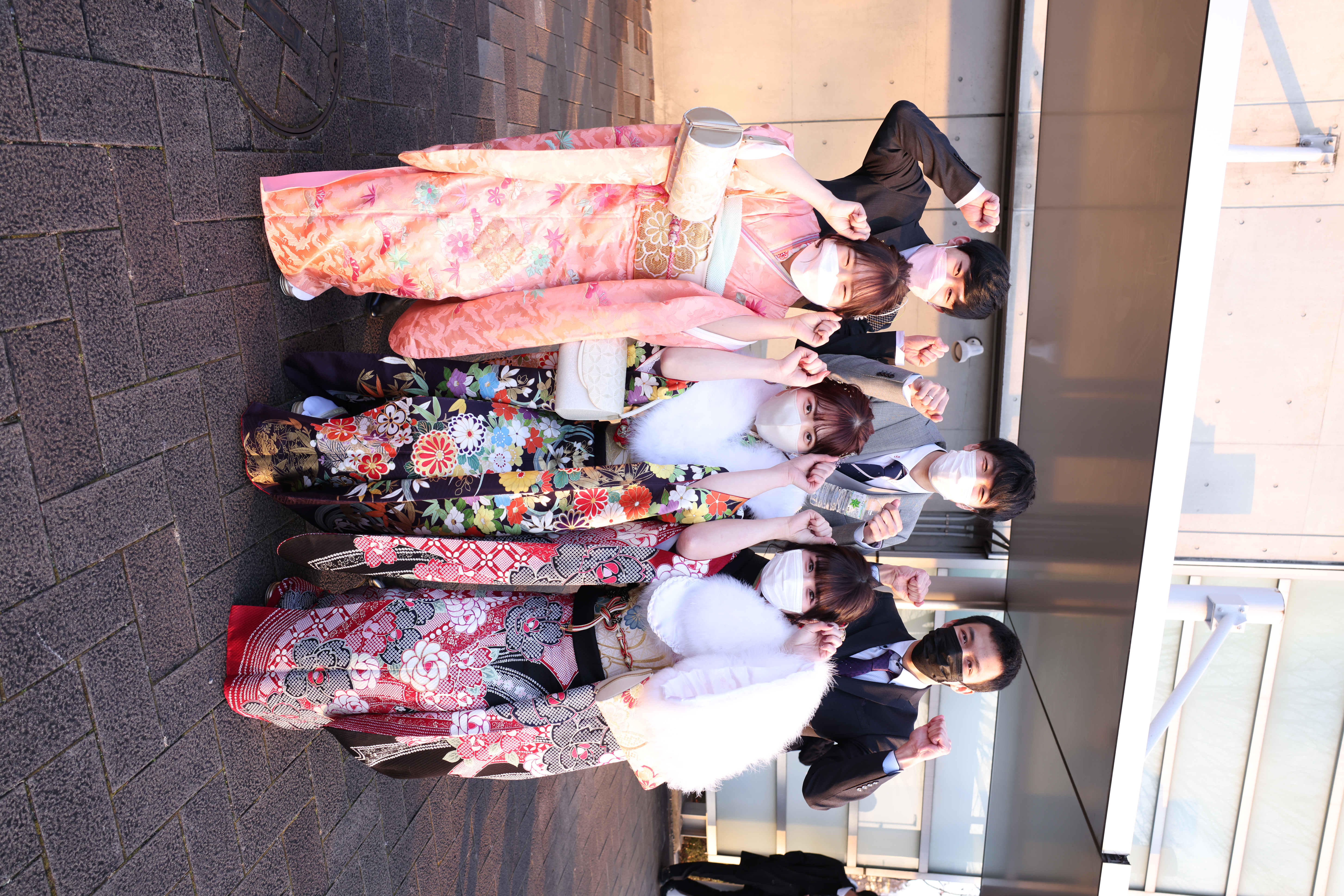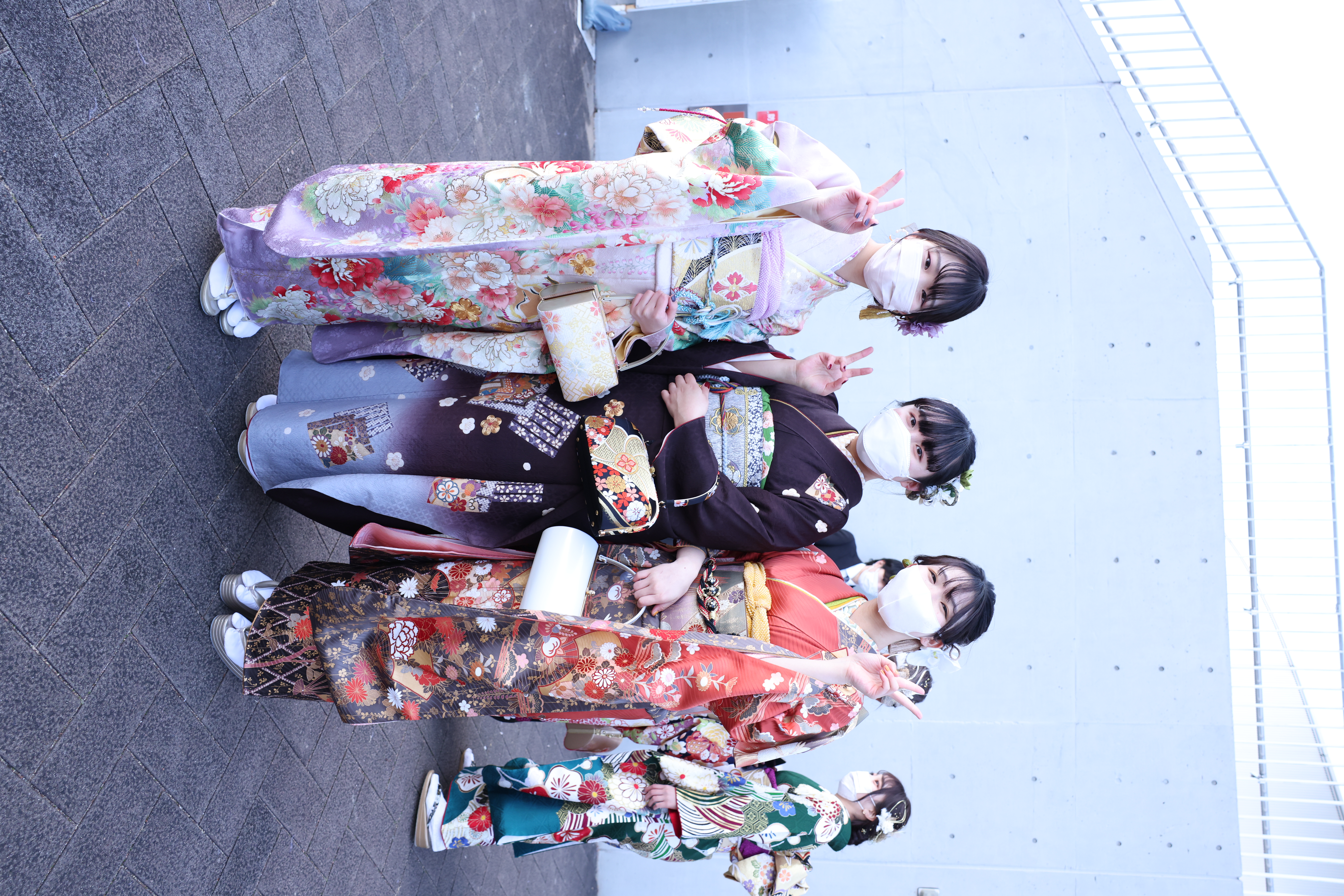 お仕度終了後にカメラマンが式典会場に向かい、当店でお世話になったお嬢様方がいればお声がけして、お写真を撮影させて頂きました。