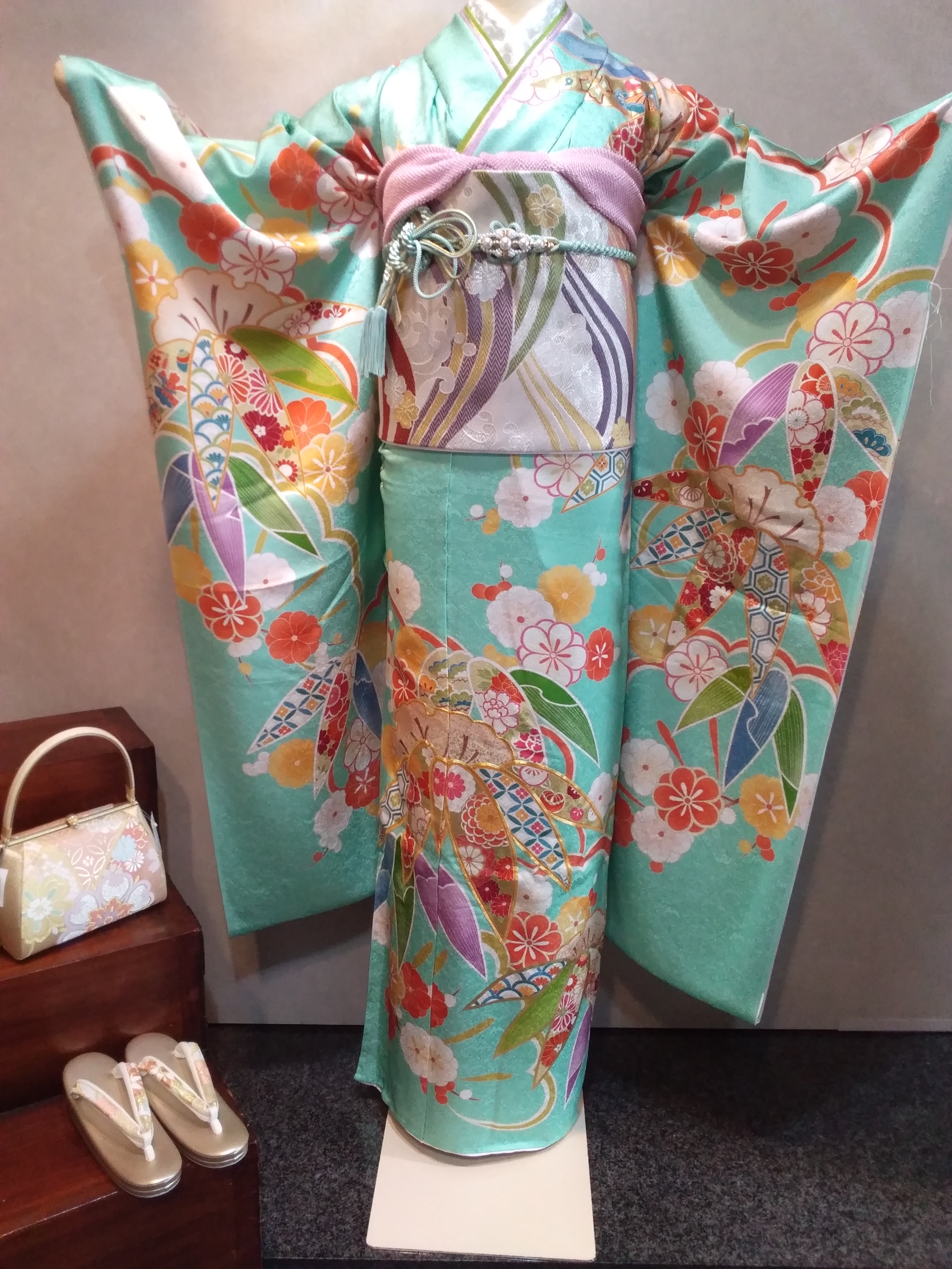 ミントグリーンがお好きなお嬢様は、毎年一人はいらっしゃり、ミントグリーンを指定で着物を選びにいらっしゃいます。