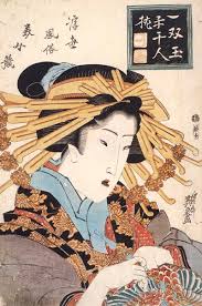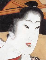 浮世絵の女の人の唇は赤と緑に塗られています。というのも何度も紅花の口紅を塗り重ねると、玉虫色の緑色になるからなのです。高価な口紅を重ねてつけれることで冨のある象徴でもありますが、庶民には難しい為、墨を塗った上に赤を重ねて濃く見せるという事もあったようです。