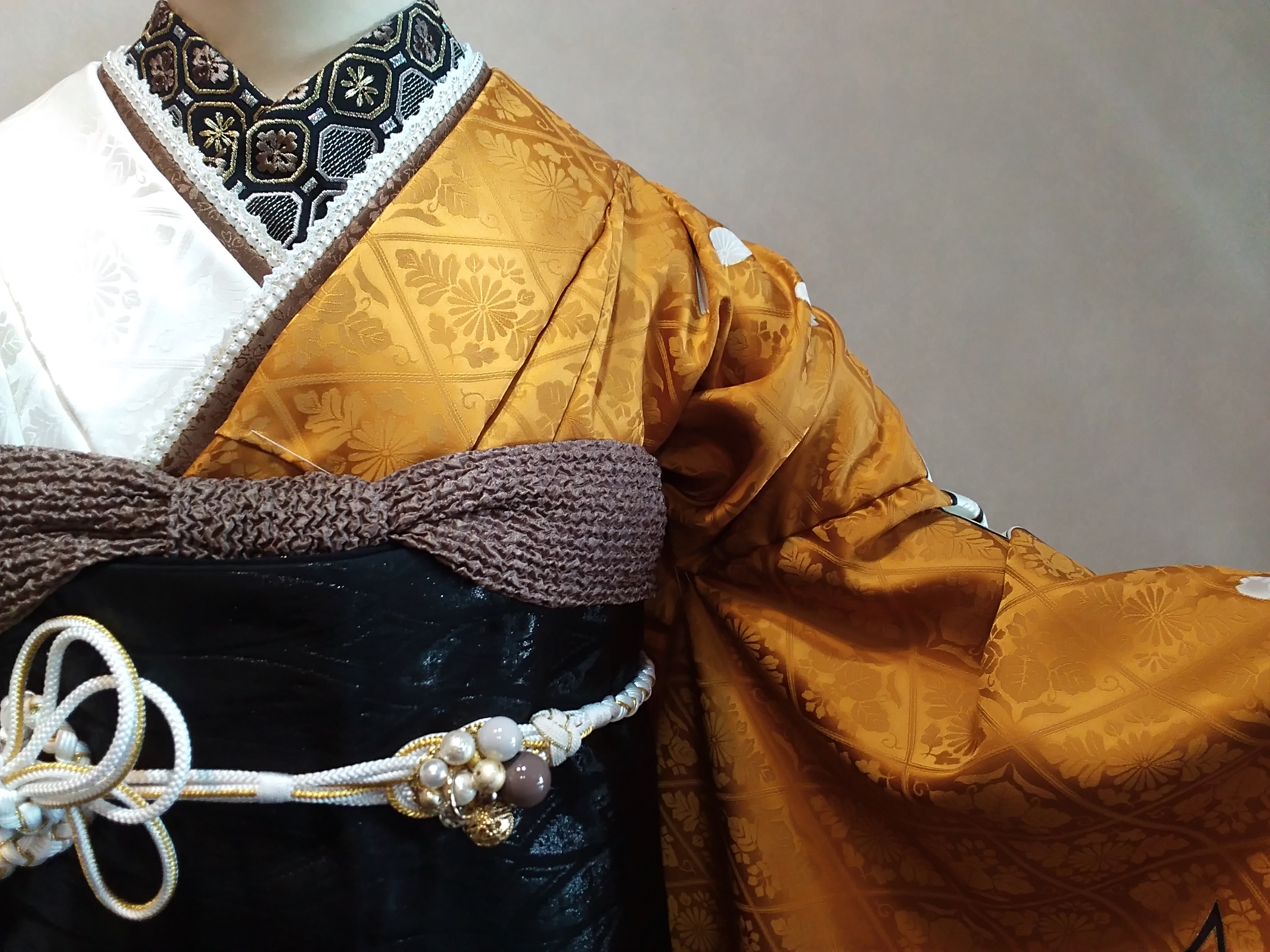 今回はキリッと黒の帯を合わせるので、半襟も黒に。
