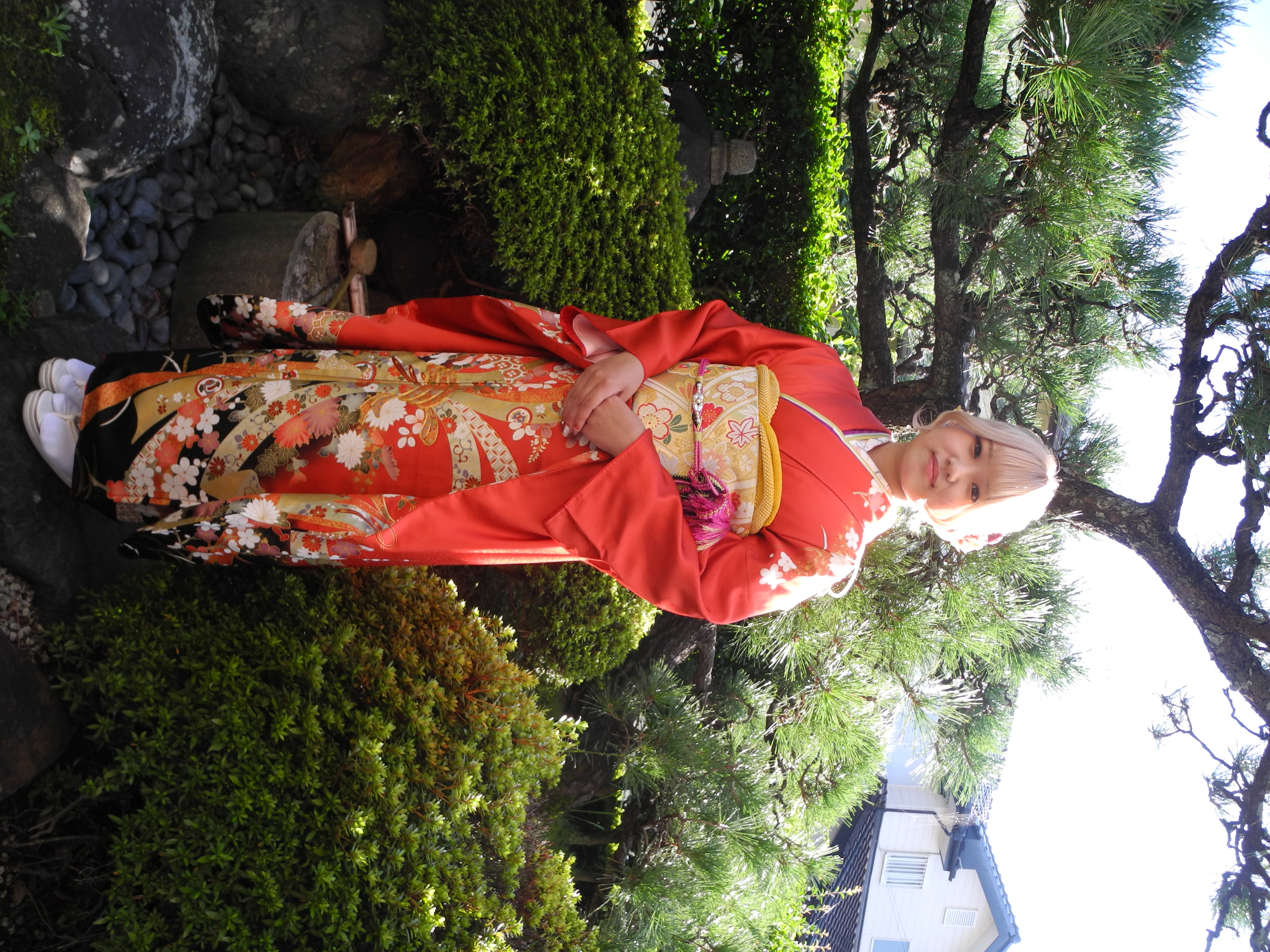 朱赤のお振袖は、強い印象になりそうですが、金髪だと朱赤の色味も柔らかく感じますね。