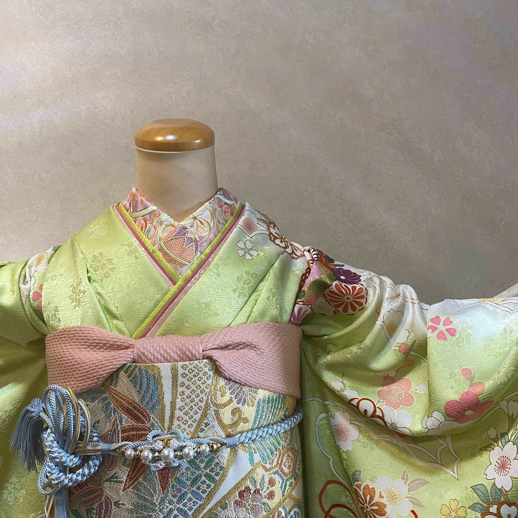 半衿や帯もパステルカラー調で合わせれば、可愛らしさが一層増します。
