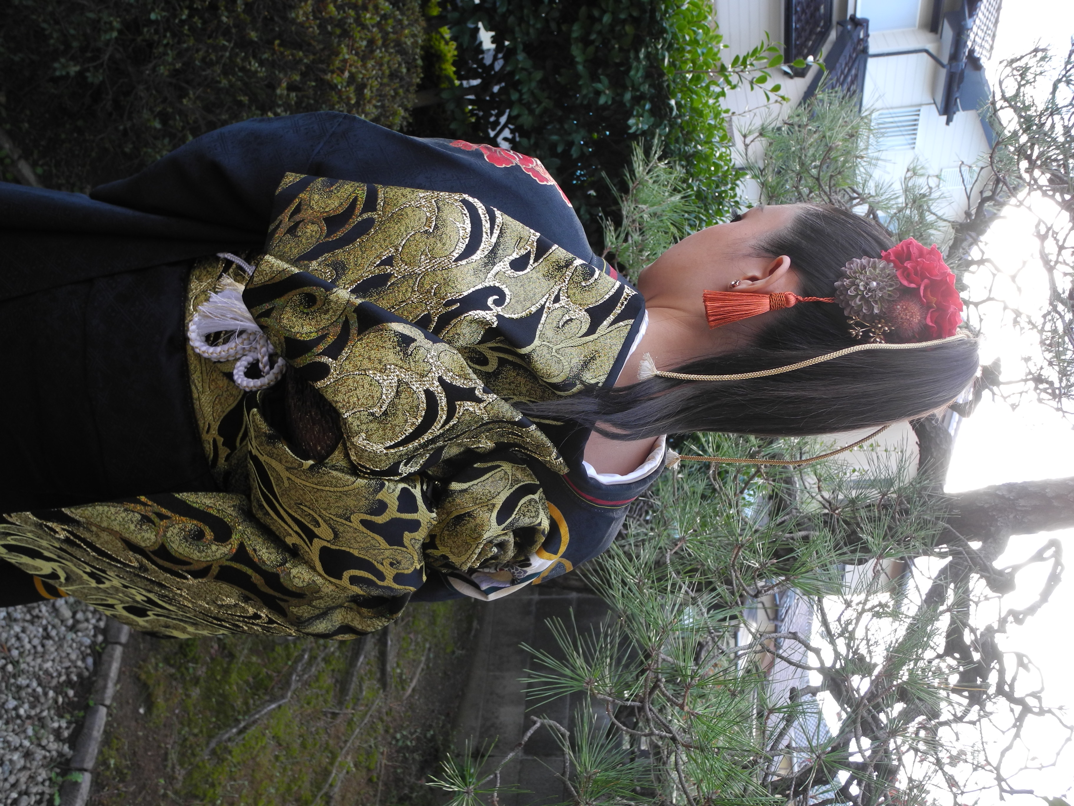 キリッとカッコイイお嬢様にピッタリのお振袖を選ばれて、髪型も、髪飾りもお嬢様の雰囲気と着物にピッタリで素敵ですね!