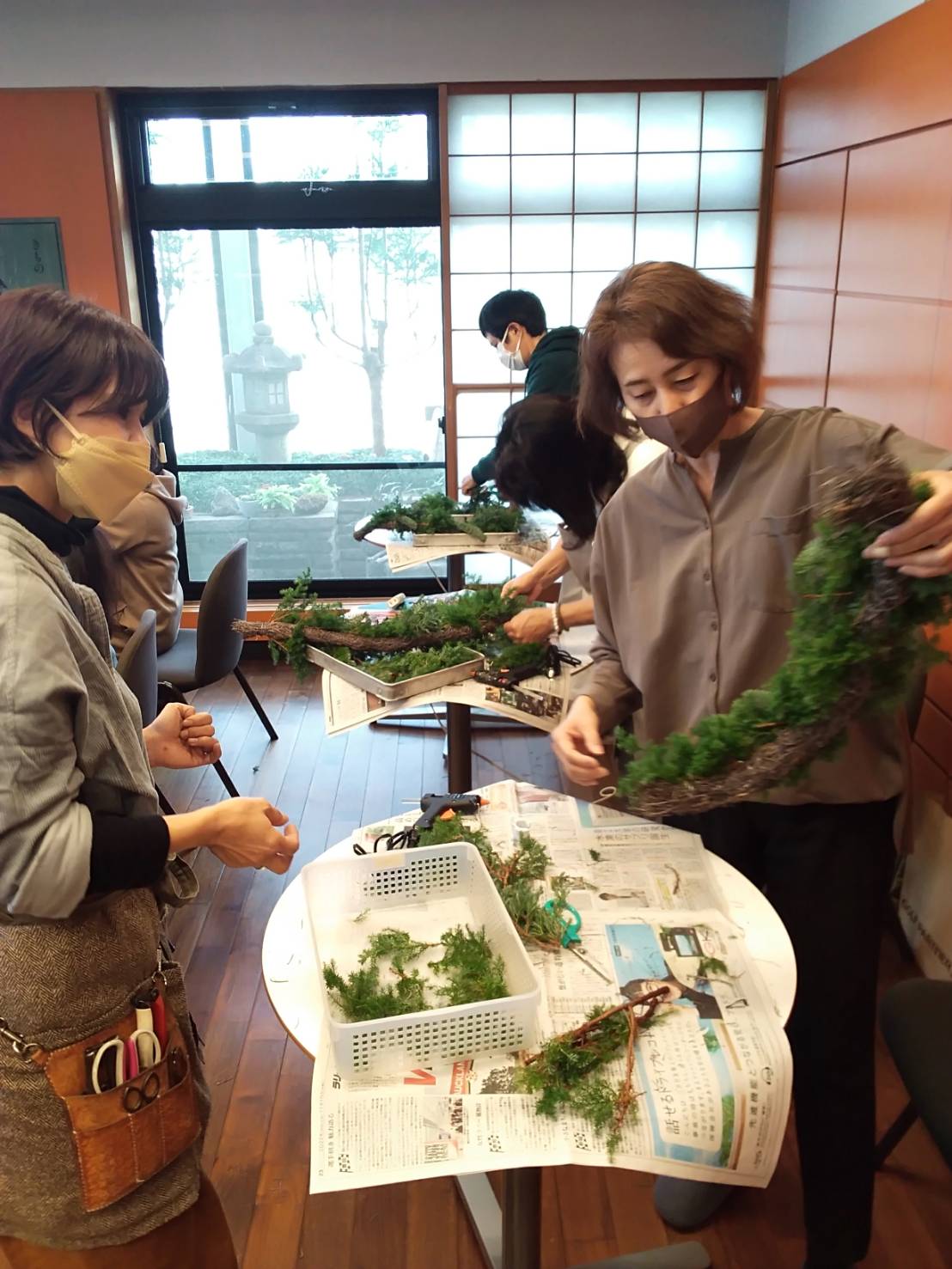 花材も蓮の花托や、鈴、杉の木などを使い、匂いも良いオーナメントになりました。