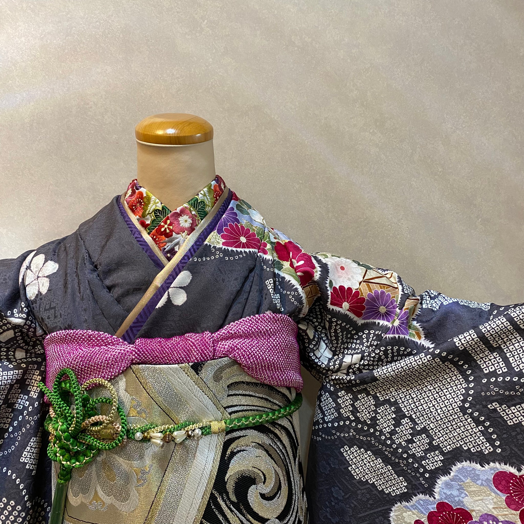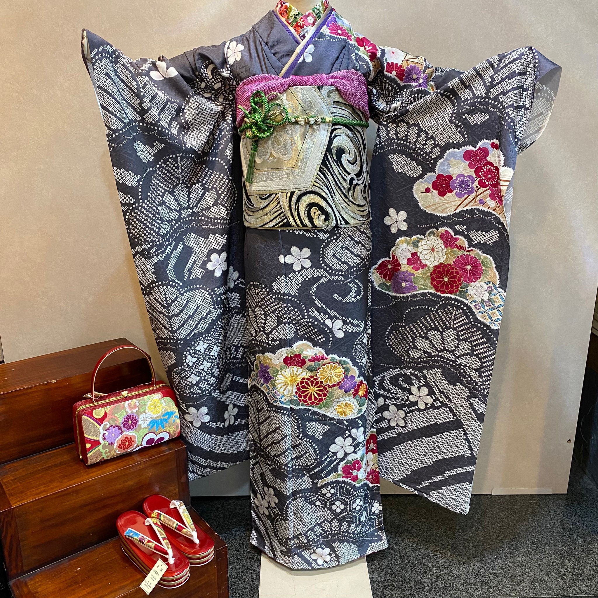 着物の購入、レンタル、お母様のお振袖等の小物合わせ、着付けのお仕度(ヘアー・着付け)、撮影も当店で行う事が出来ます。着物の洗い、仕立て直し等、お着物のことでしたらなんなりとご相談ください。