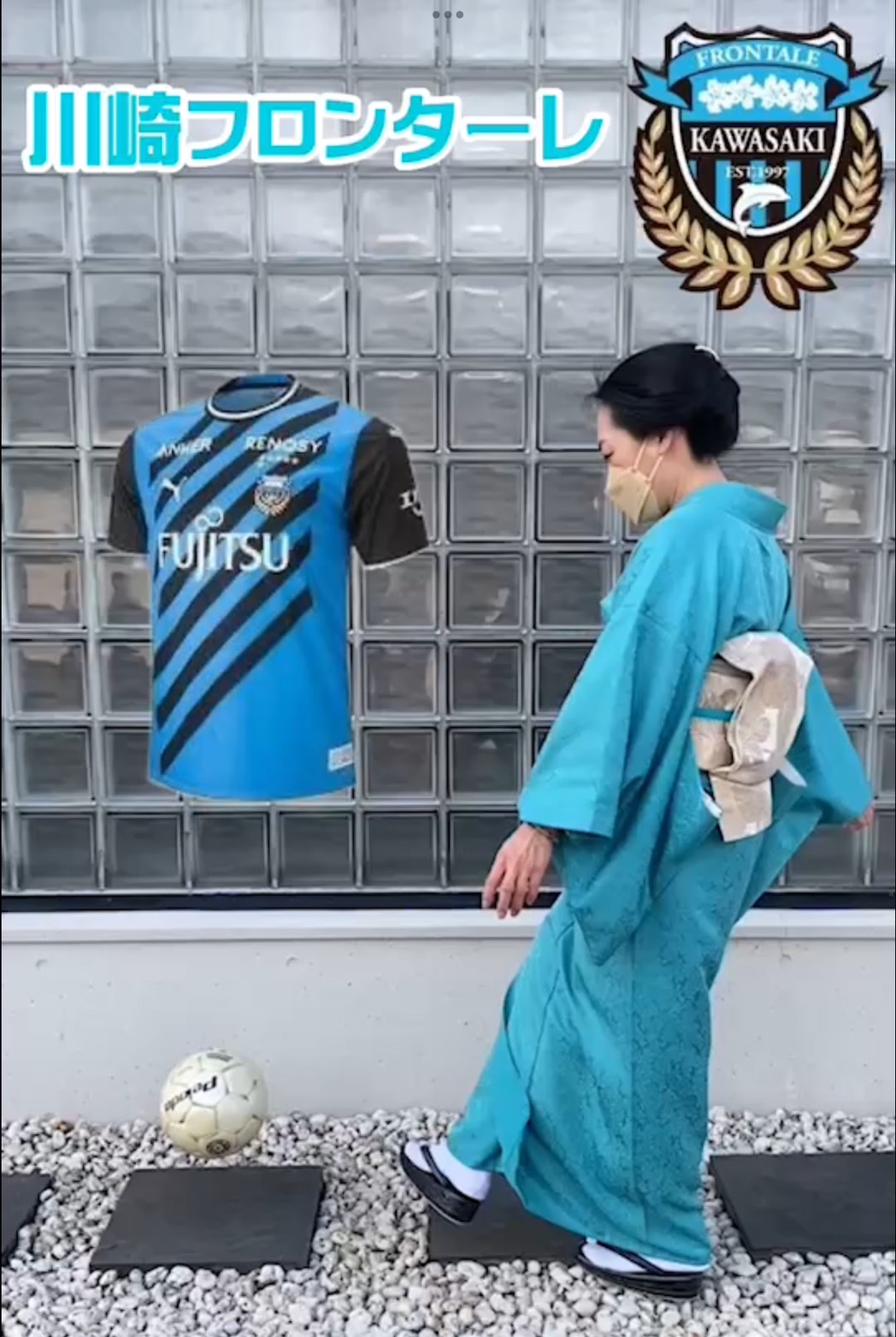 サッカーの応援に着物を着て行っても、サポーターに交じったらわからなくなりますよね!