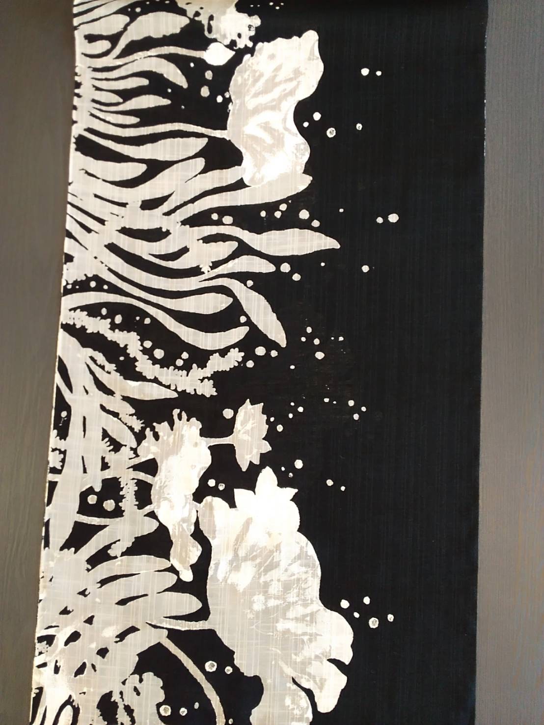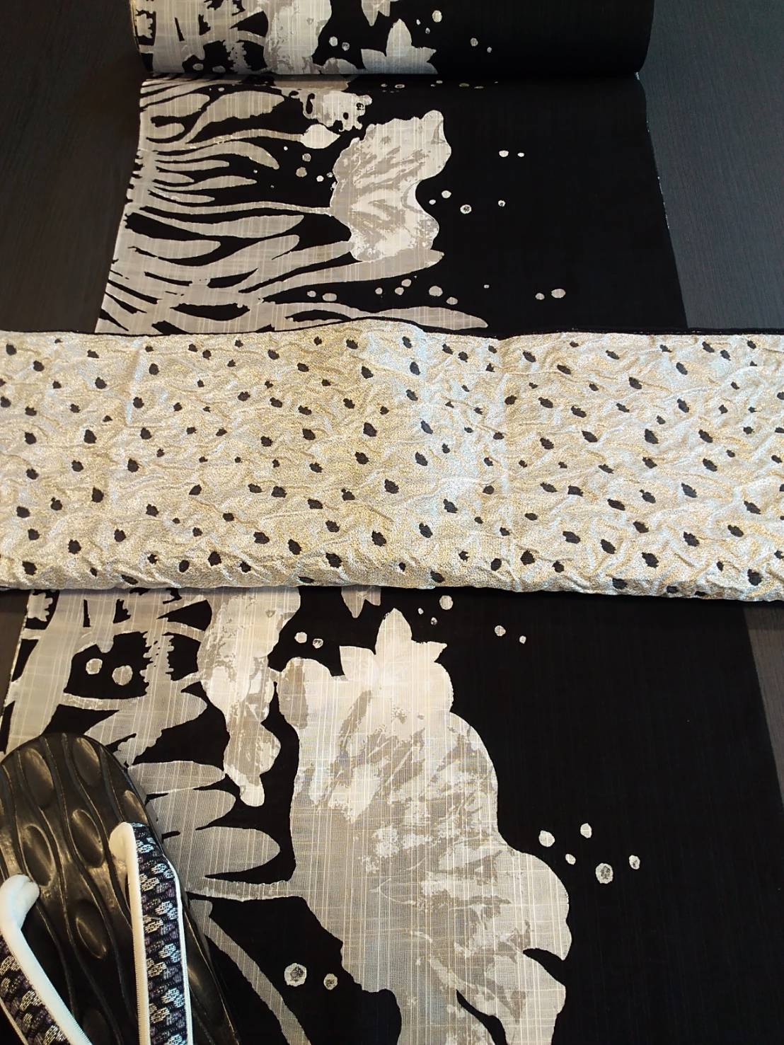 ぼつぼつのデザインがリンクする、兵児帯と合わせたコーディネイト。