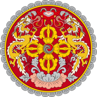 ブータンの国章には、円形の中にブータンを象徴する龍(ドゥク)のほか、さまざまな仏教のシンボルが描かれています。このエンブレムは1980年以来使用されています。