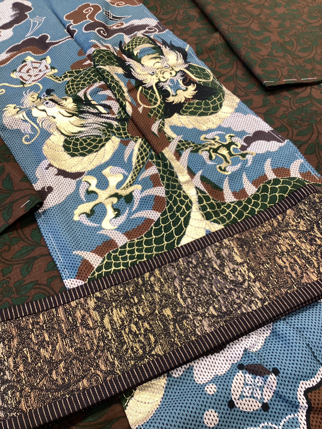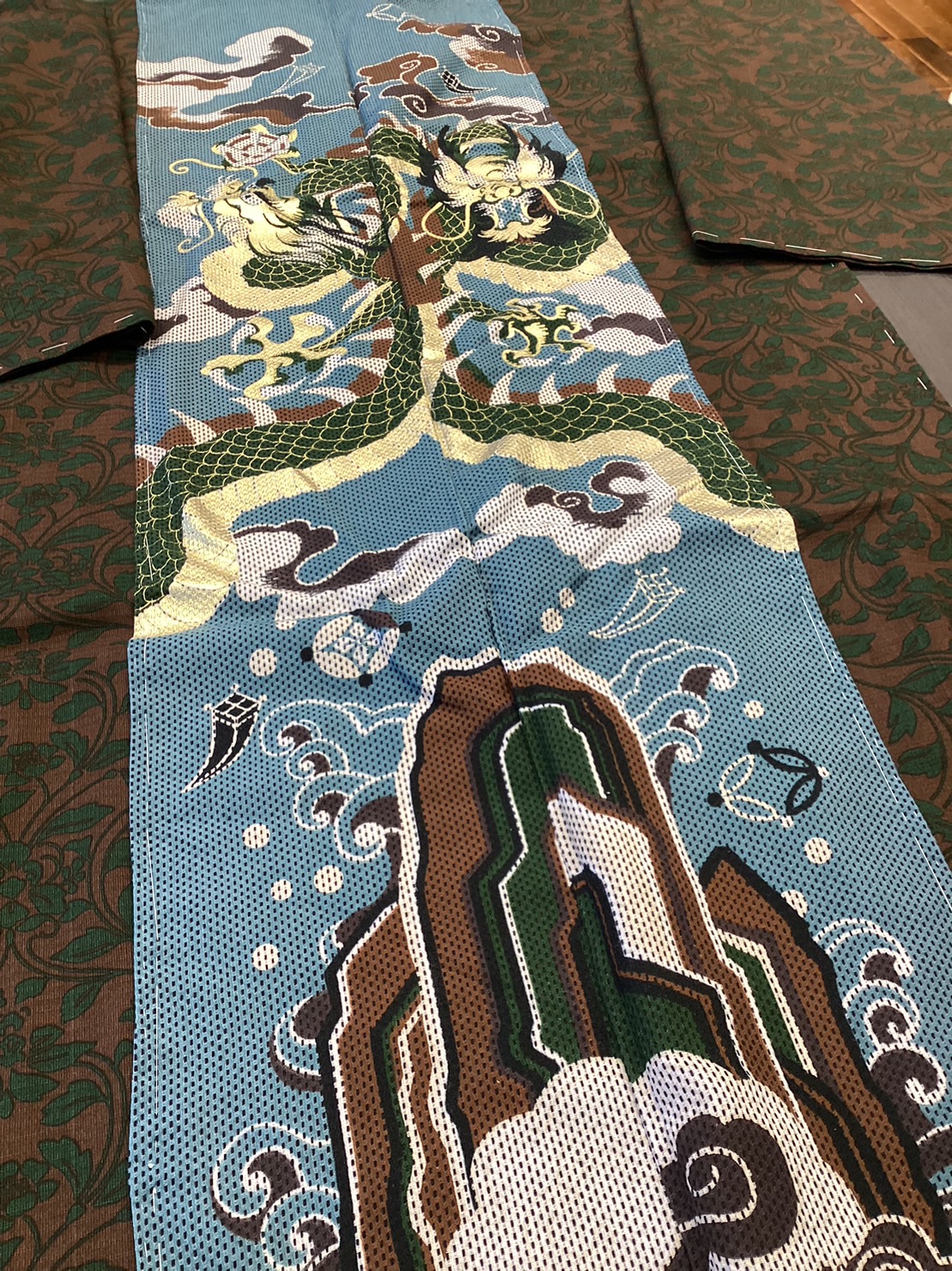 かっこいいのですが、女性が着用すると、大事な龍の部分が帯に隠れてしまったりするので、男性のような着方をしないと威力が発揮できないですね・・・。
