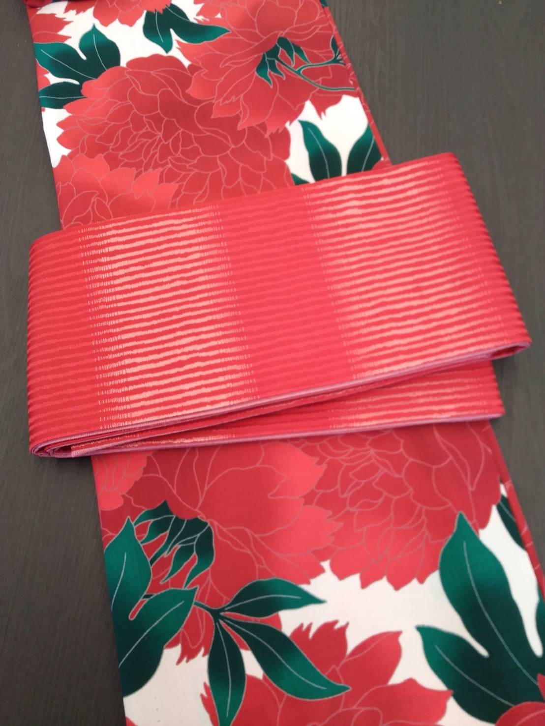 浴衣と帯、下駄や帯締め、帯留めなどもそろえているので、プレタ(仕立て上がり)の浴衣なら、今日からお祭りに浴衣を着ていけますよ。