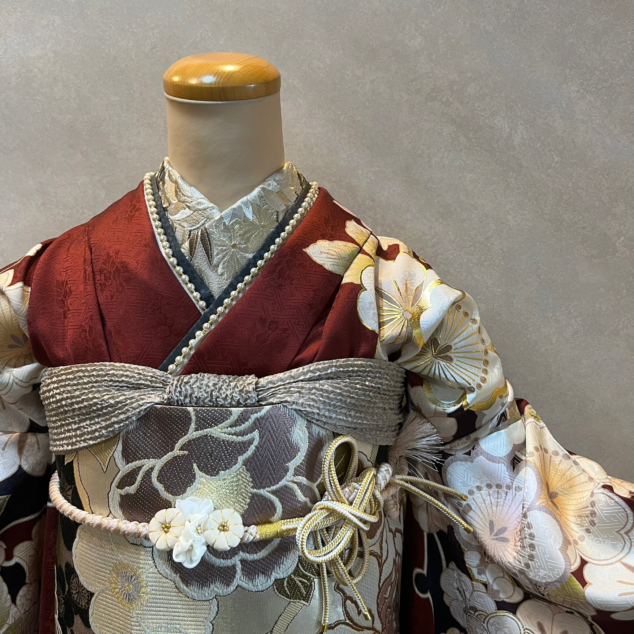 小物も色味を抑えているので、お振袖の蘇芳色が際立つコーディネイトです💗