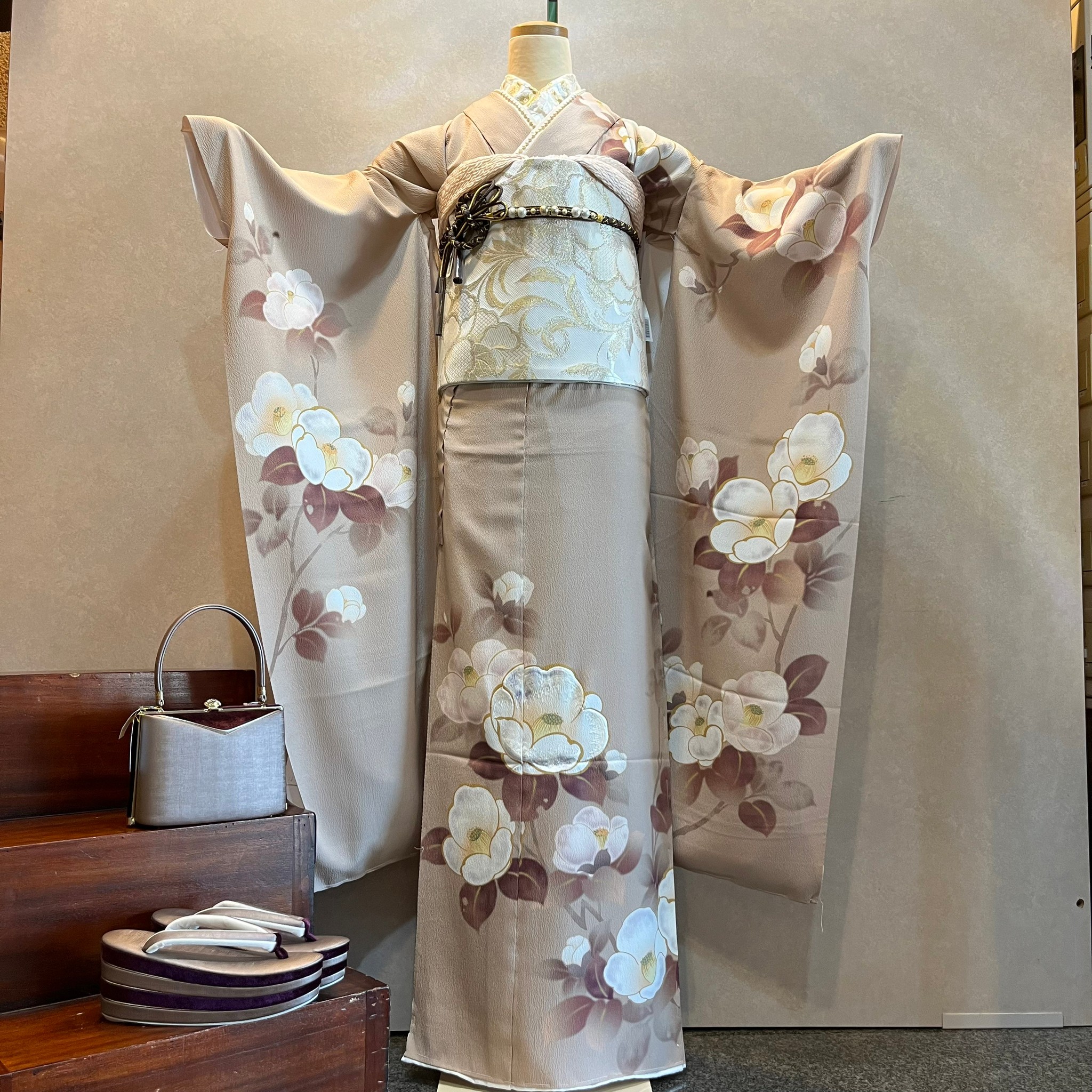 今回は山茶花に似た、椿柄のお振袖をご紹介します。