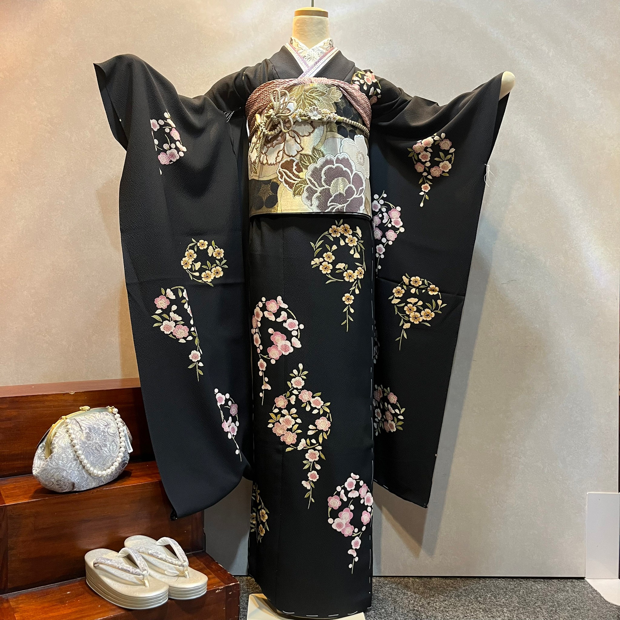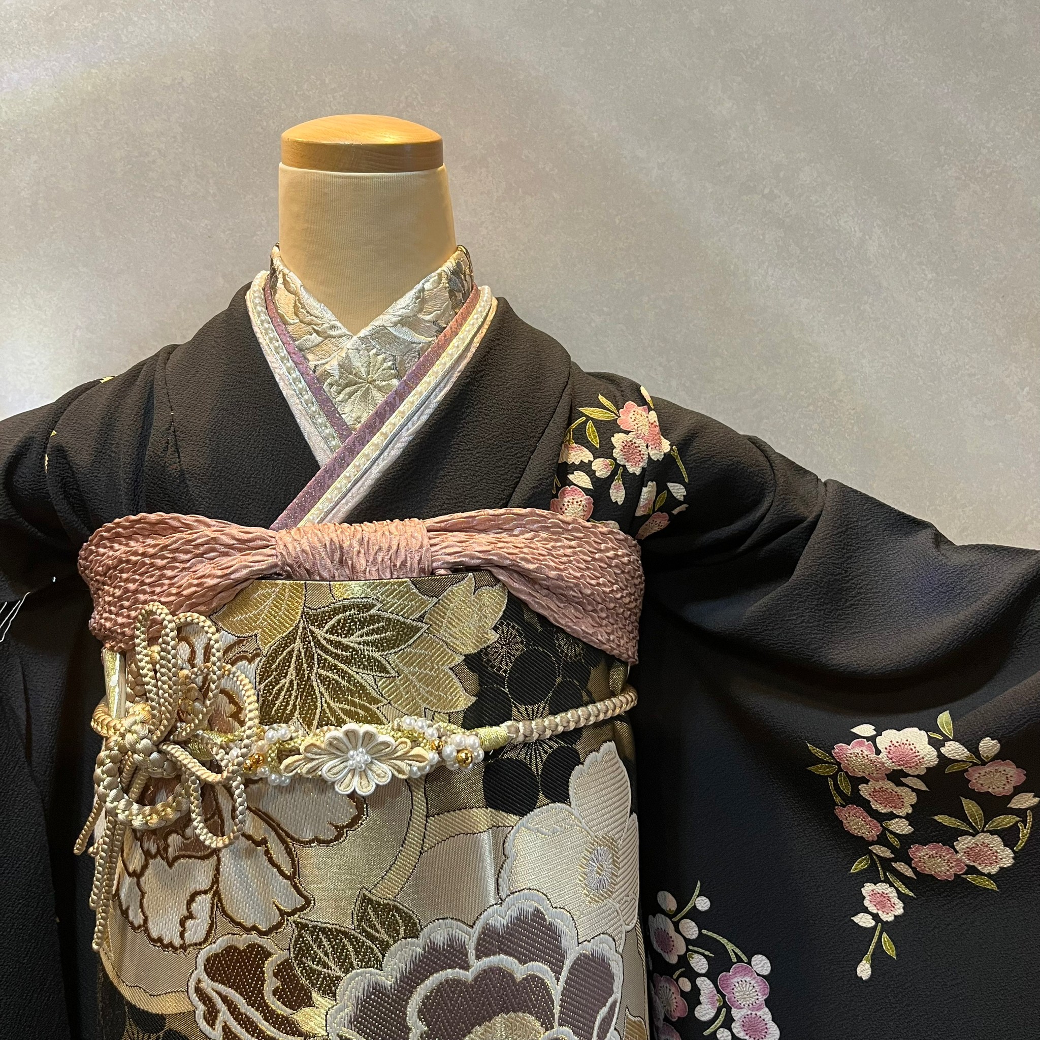 黒地ベースの梅が着物からは浮きすぎず、調和を取ってくれます💗