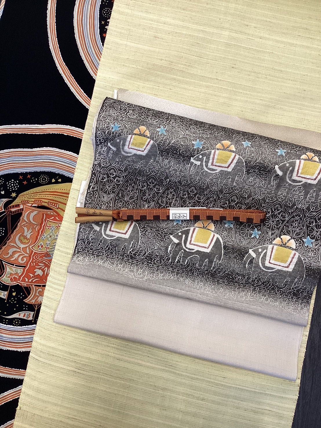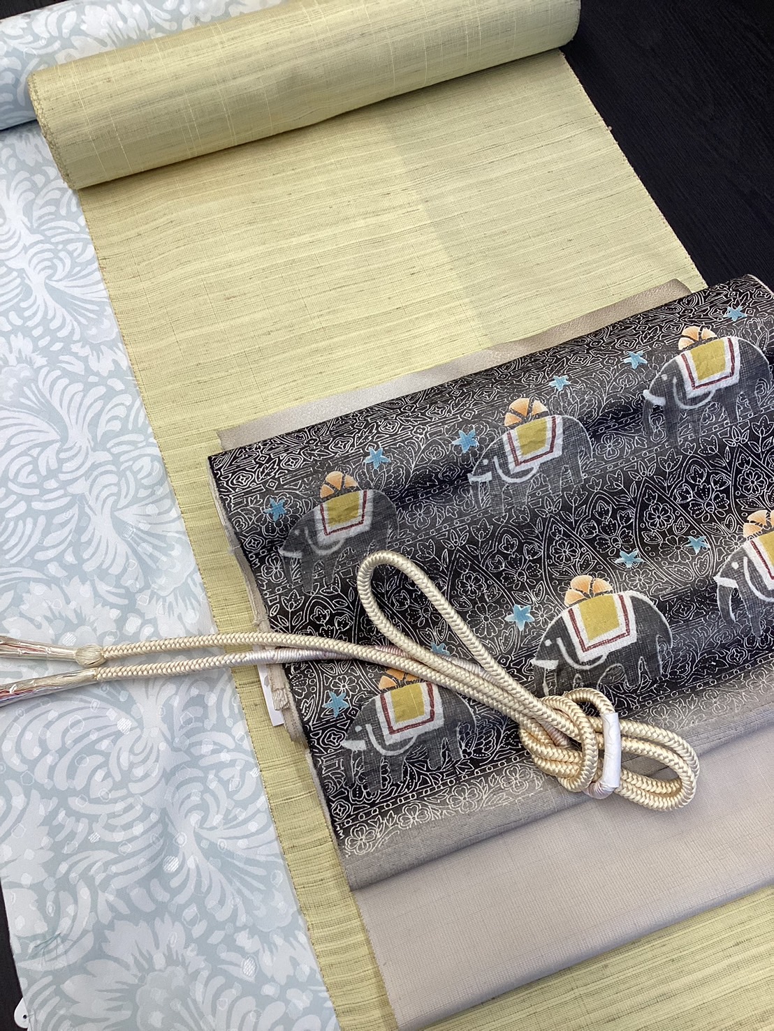 黄色の米沢紬にぞうさんの名古屋帯は同じです。