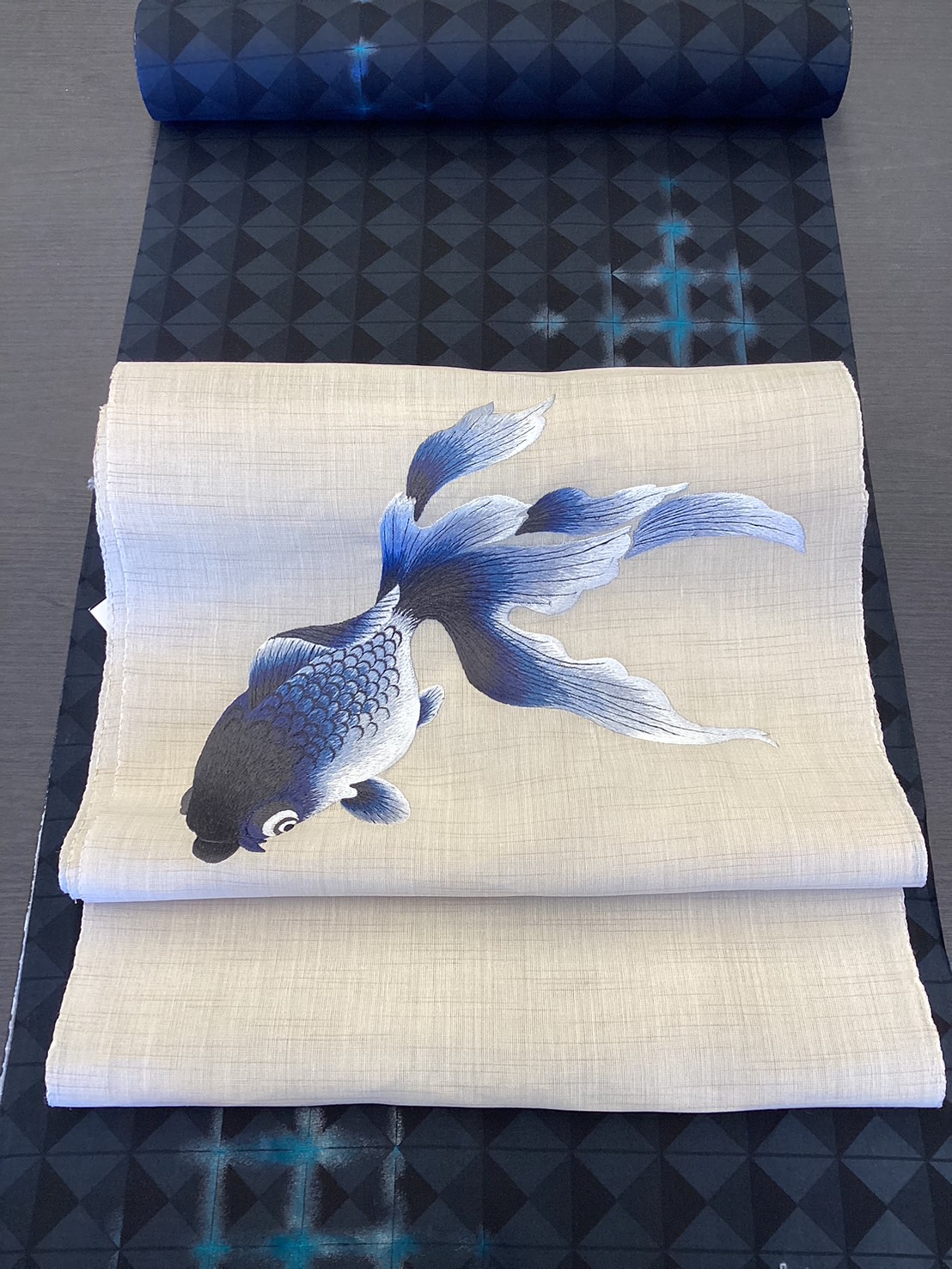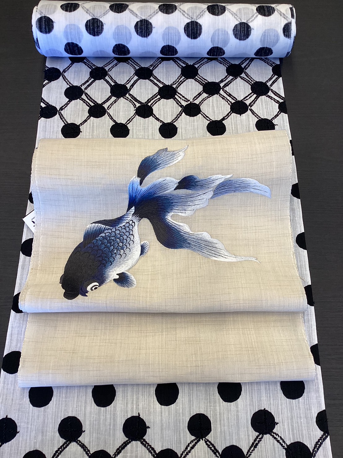 金魚の浴衣も誉田屋源兵衛さんでは定番柄で有名です。