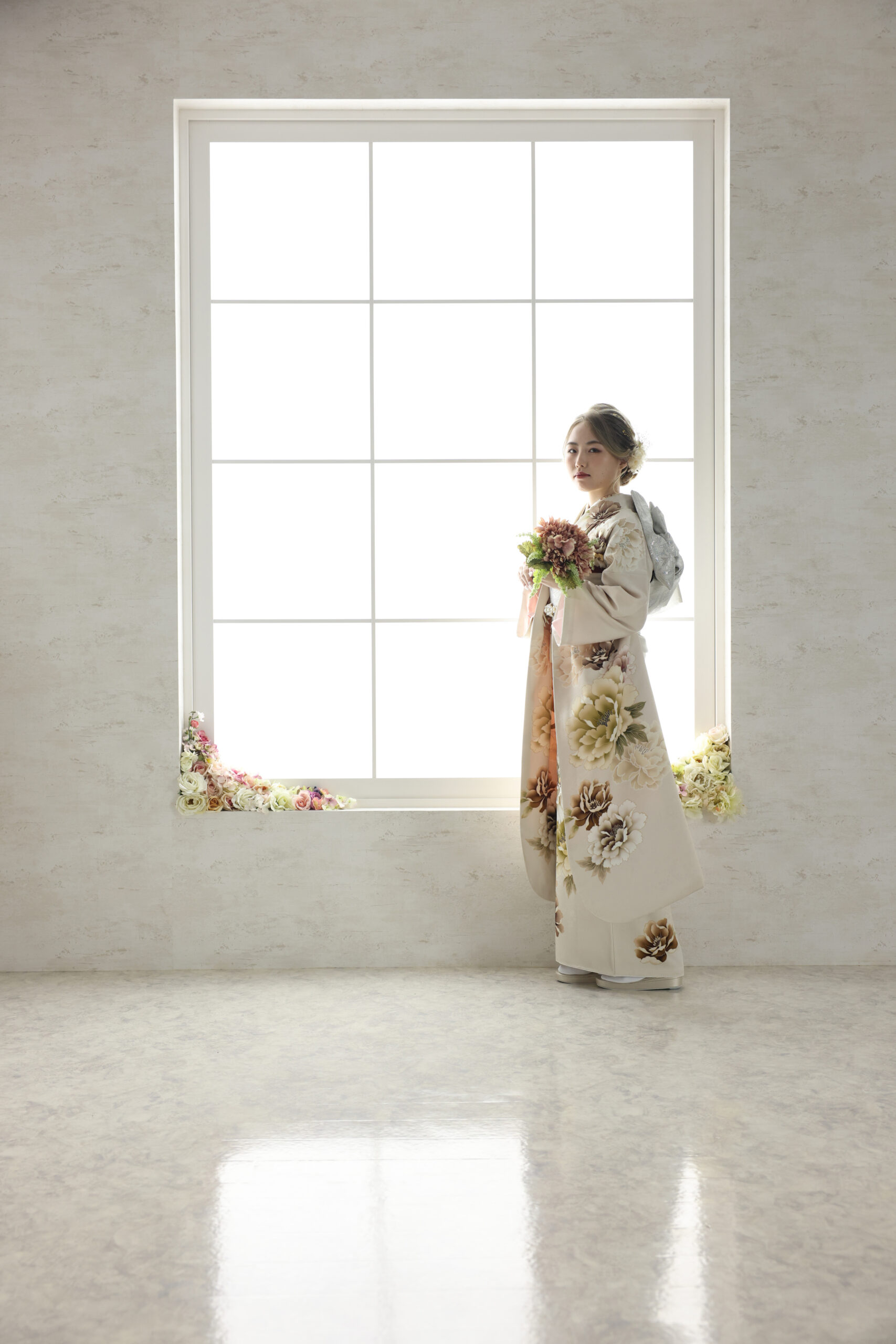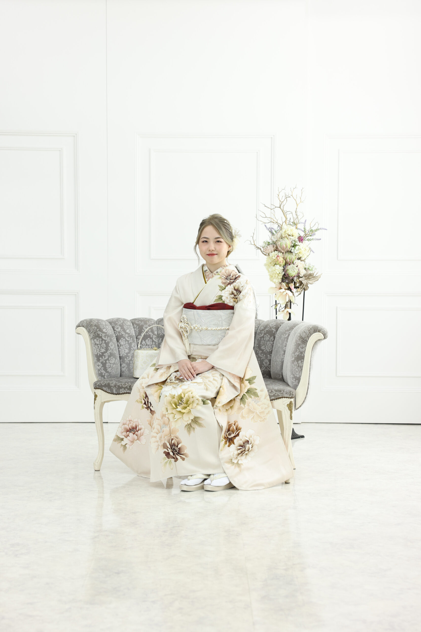 色白のお嬢さまにピッタリのアイボリーのお振袖。