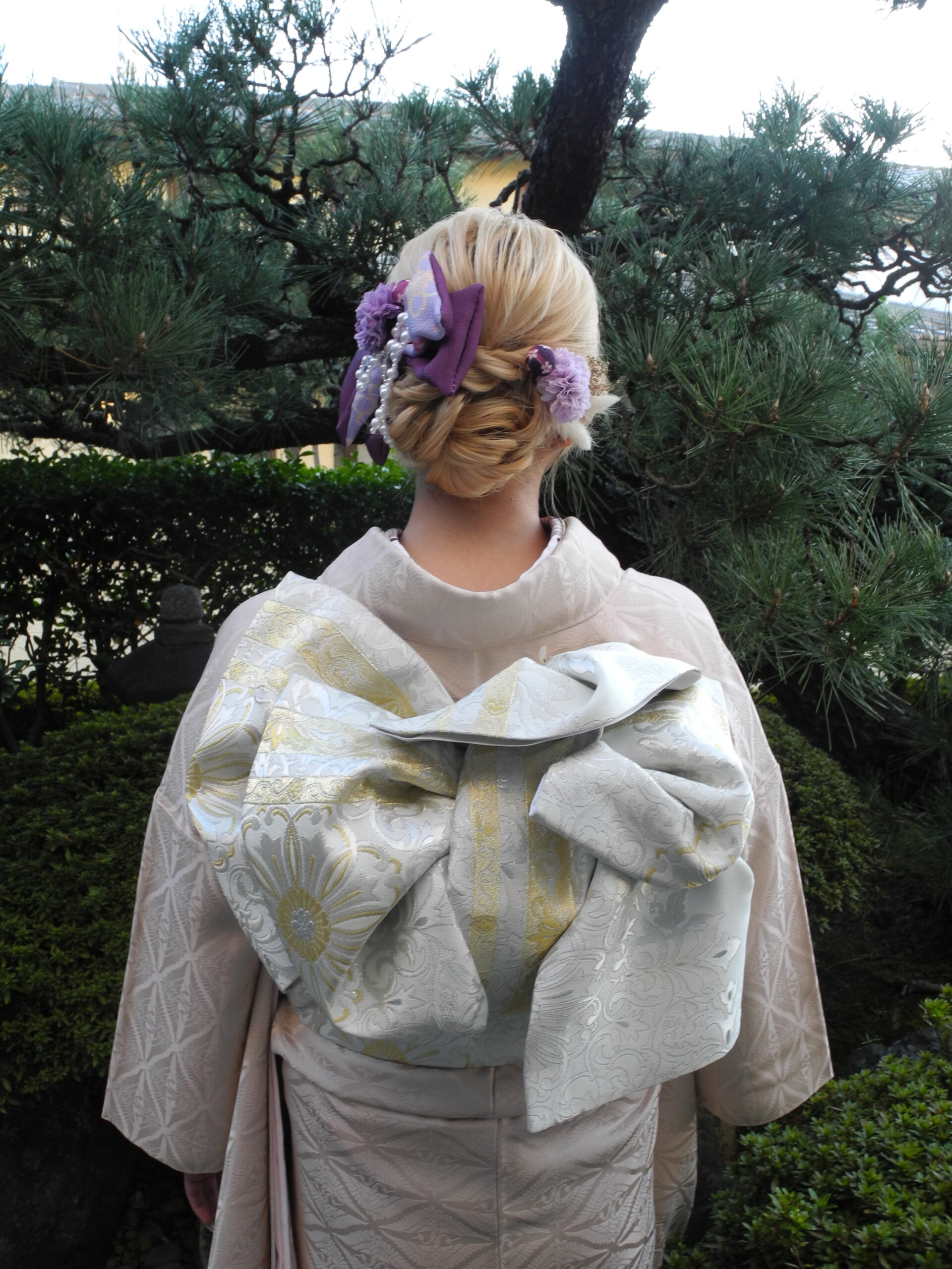 半襟、髪飾り、ネイルに紫系の色味をプラス。