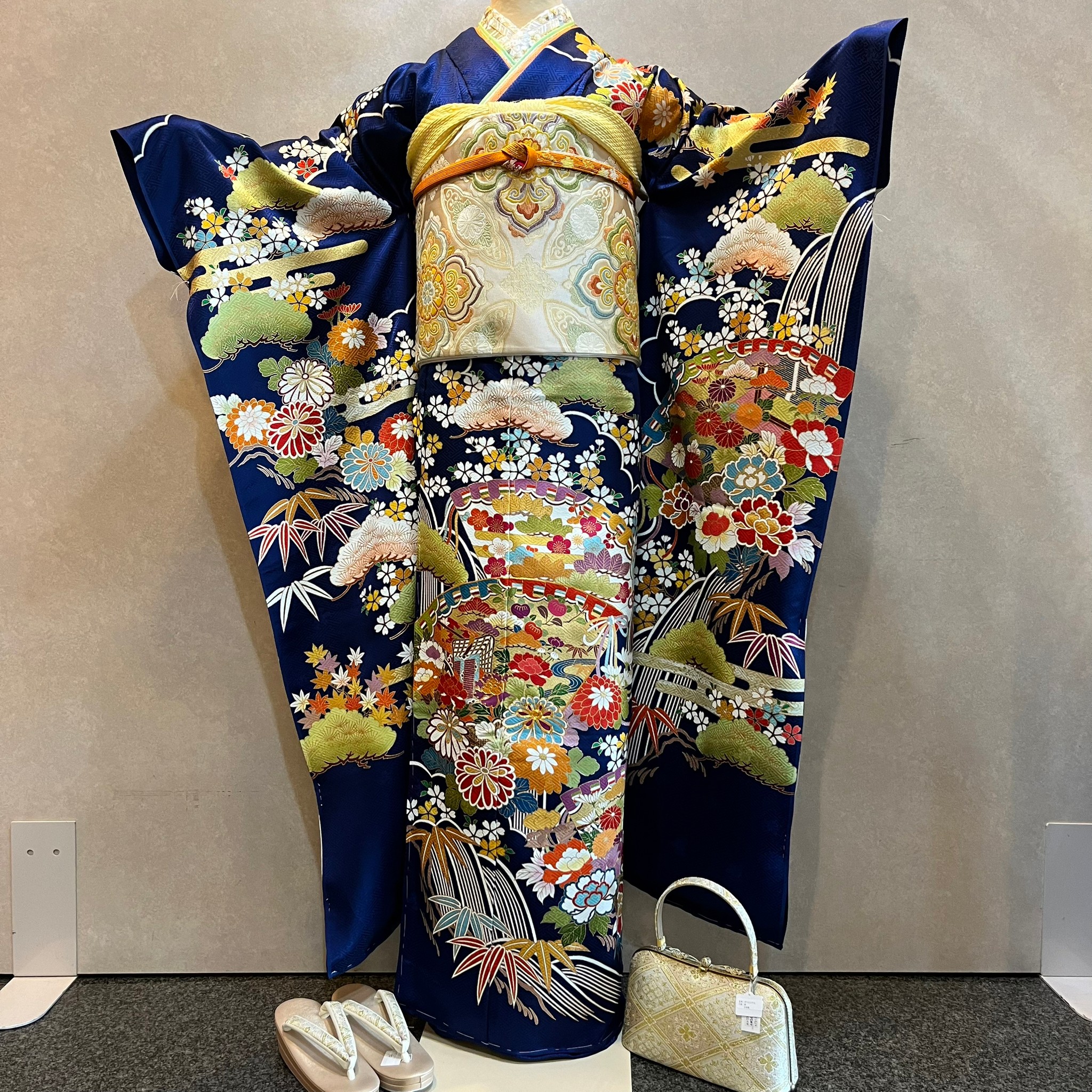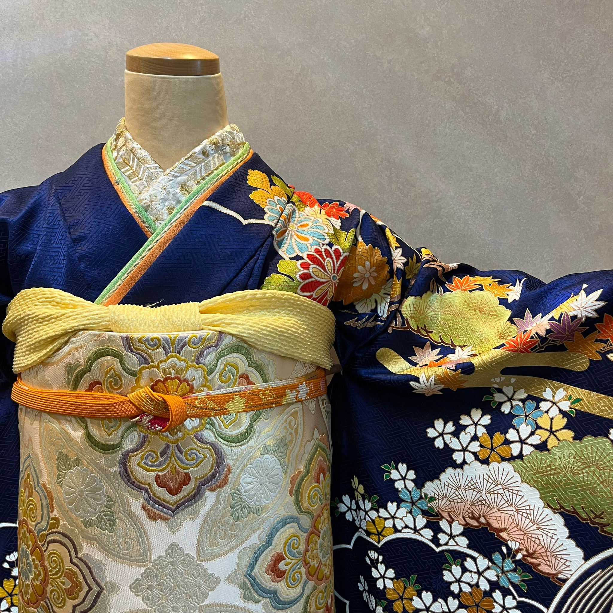 いろんなお振袖がありますが、王道の古典柄、絞のお振袖は時代がわかりにくいのが特徴です。そして、訪問着などにも合わせられる袋帯を合わせることで、長年使用していただけるものになります。