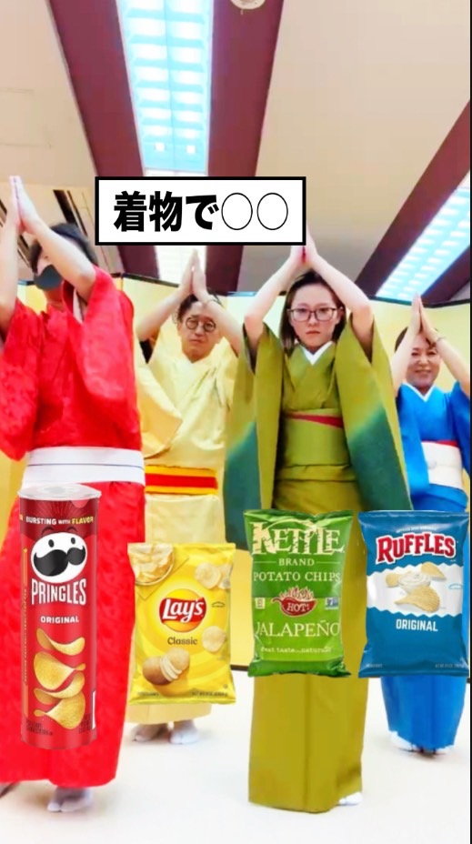 言われなきゃわかんないようなコスプレですが、動画にすれば、全世界の人たちに面白がってもらえるかも・・・。と思って、営業時間の中で超特急でコスプレダンスしております。