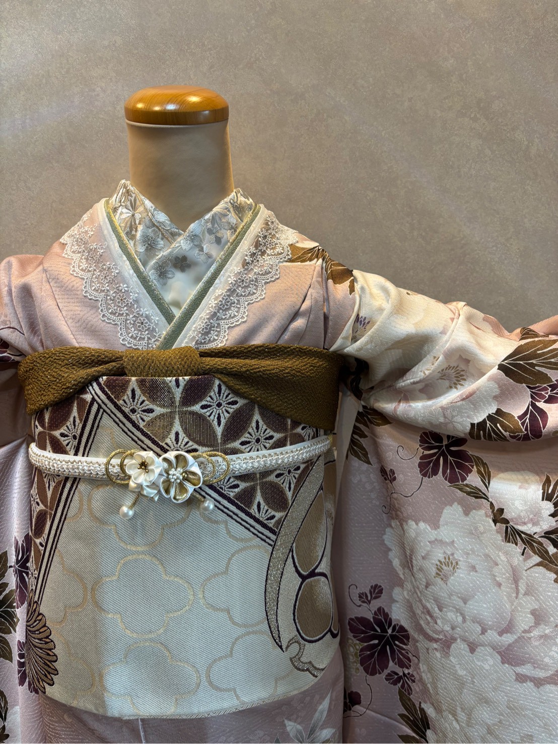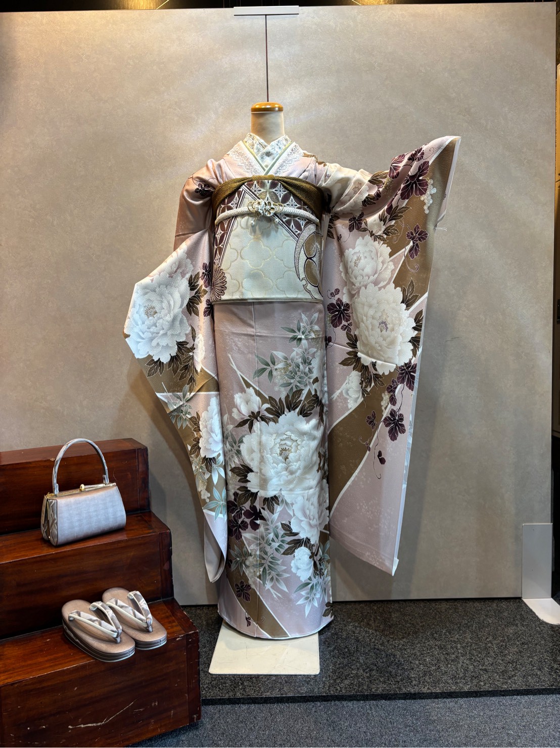 振袖コーデ (鴇鼠色に牡丹)