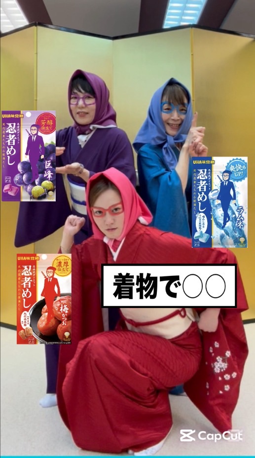 紫忍者:外国人の観光客に人気のお菓子の一つがグミなんだって。グミのパッケージコスプレしたいな。なんかないかなー。