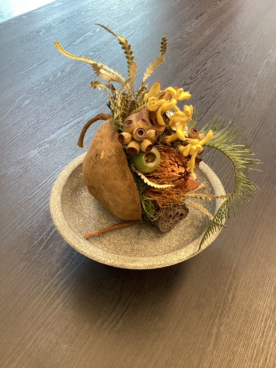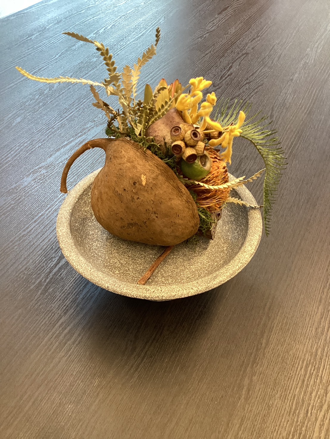 毎度、フラワーアレンジメントの先生のアイディアに驚かされます