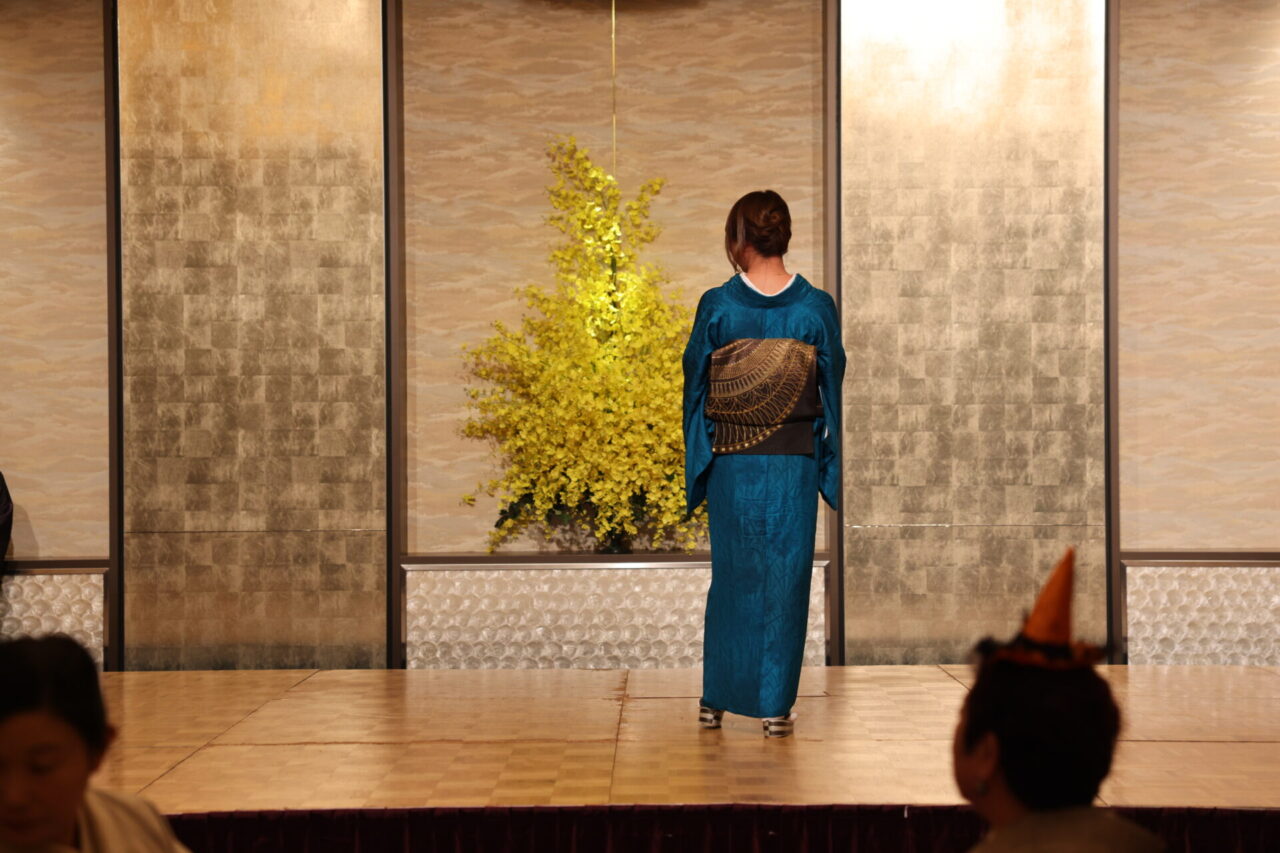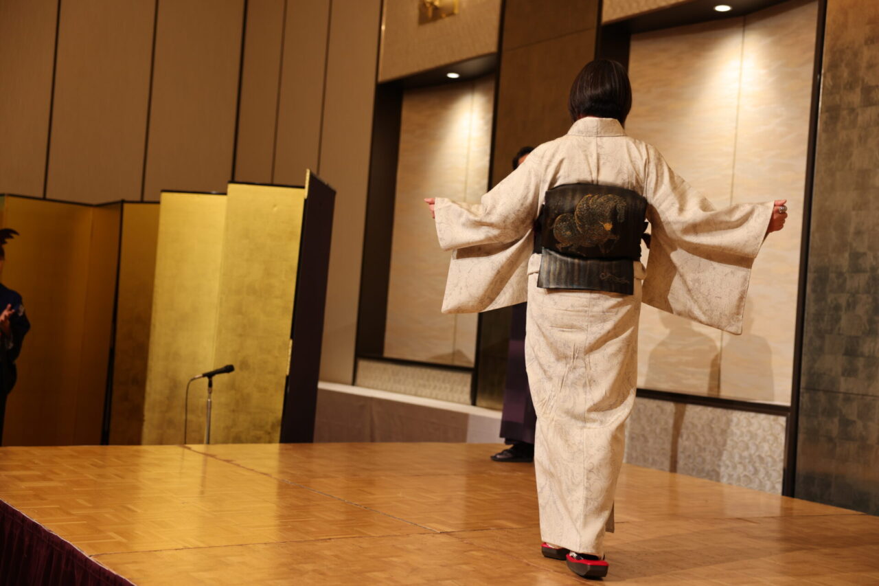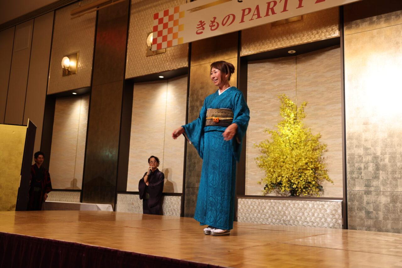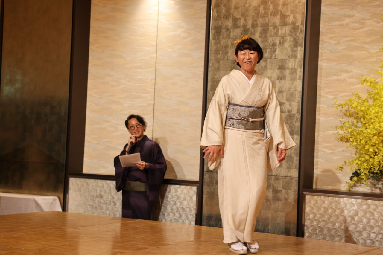 着物パーティーの中で、ファッションショーを開催させていただき、お客様に参加いただきました。