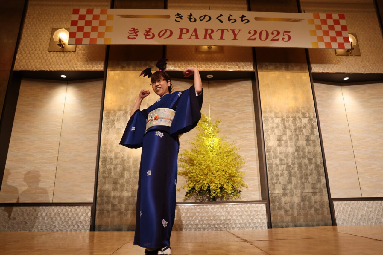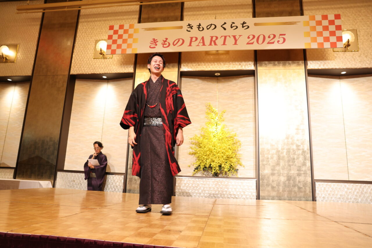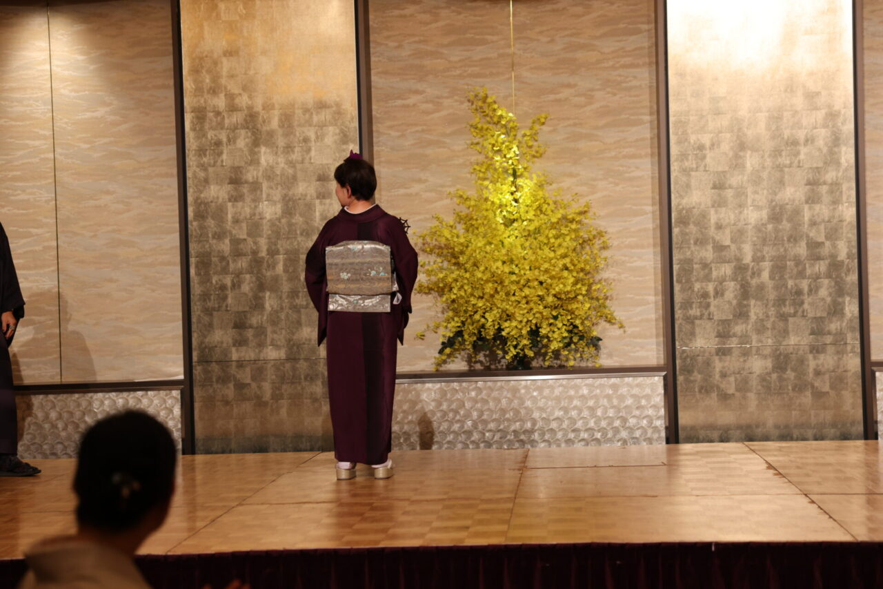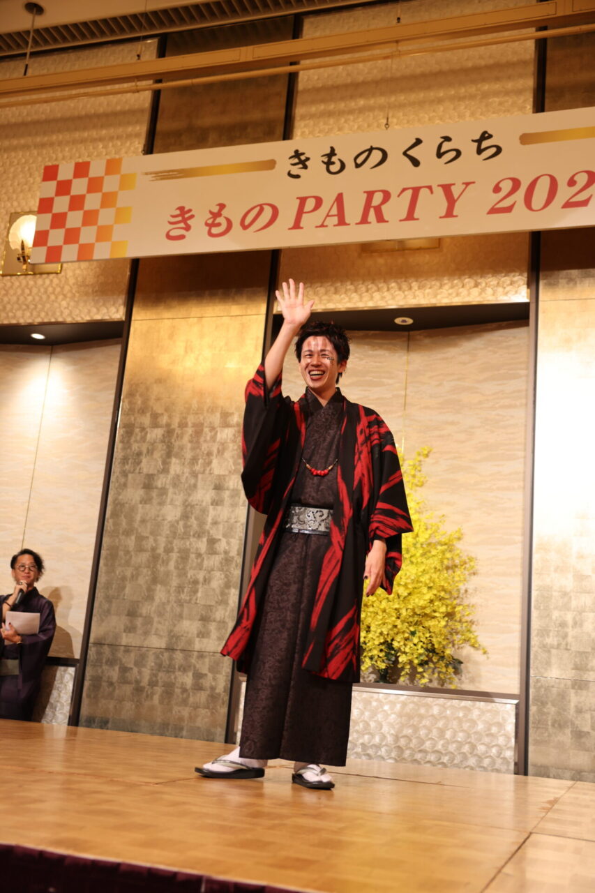 着物パーティーの中で、ファッションショーを開催させていただき、お客様に参加いただきました。