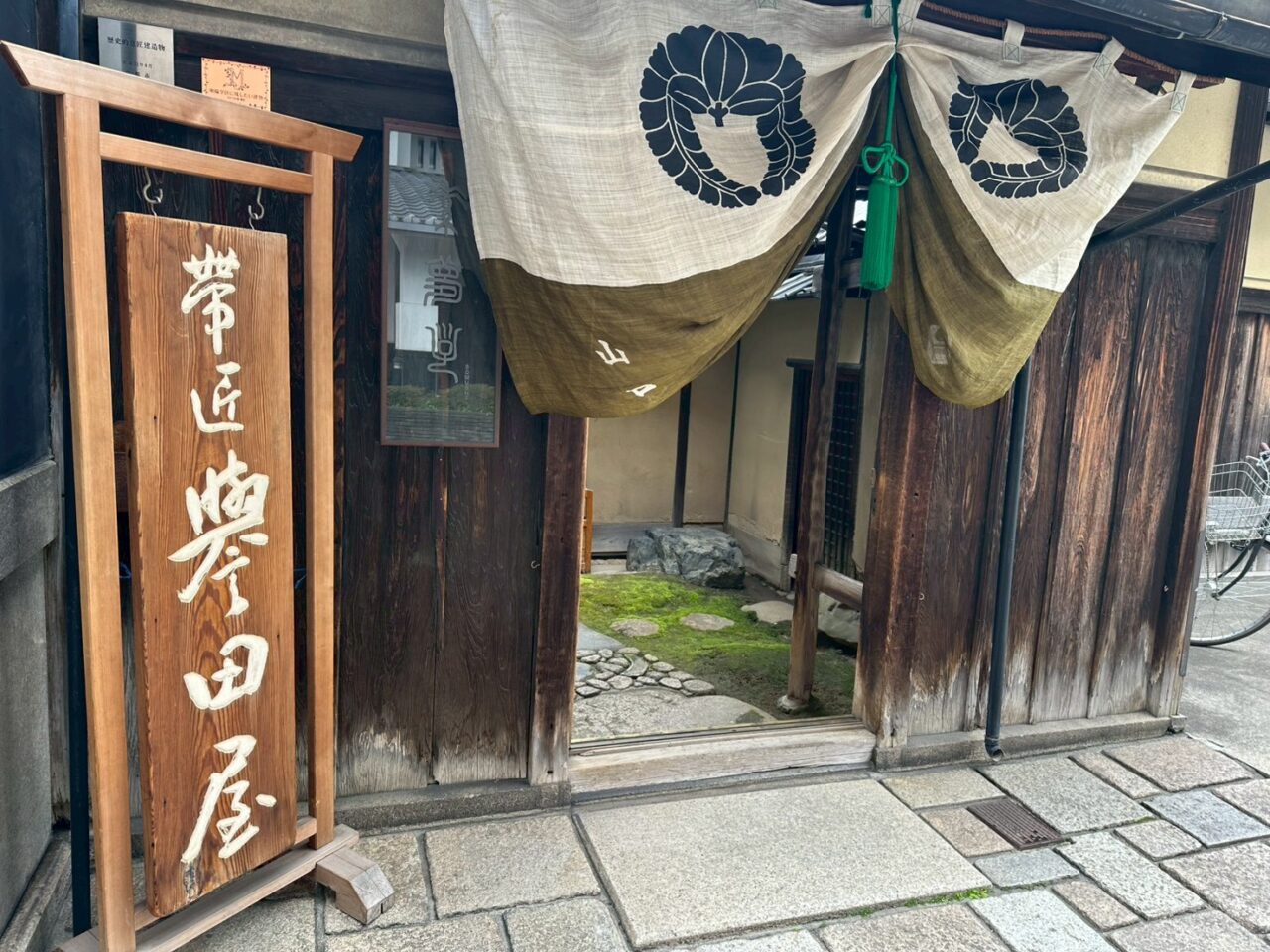 古い建物で、磨き上げられた建物は趣があります。その中で、お着物や帯を見ることができるんです。