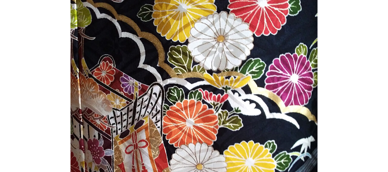 お振袖コーデ(黒地の古典をアンティーク風に)