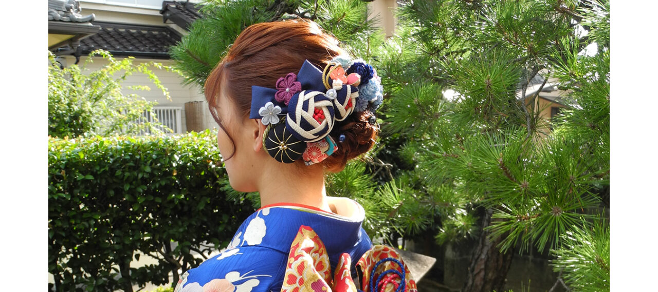 お母様のお振袖に帯や小物を合わせていたいたお嬢さま。 こんなに綺麗な青色のお振... -