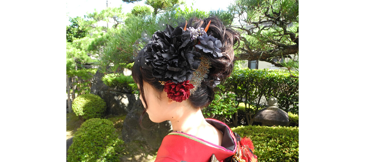 渋いお着物を選ばれたお嬢さまでしたが、当日、コーンロウ(髪型)でご来店いただ... -