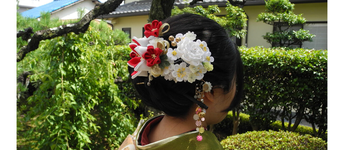 お母様のお振袖に小物合わせしていただいたお嬢さま。 白地の着物ですが、キリッと... -
