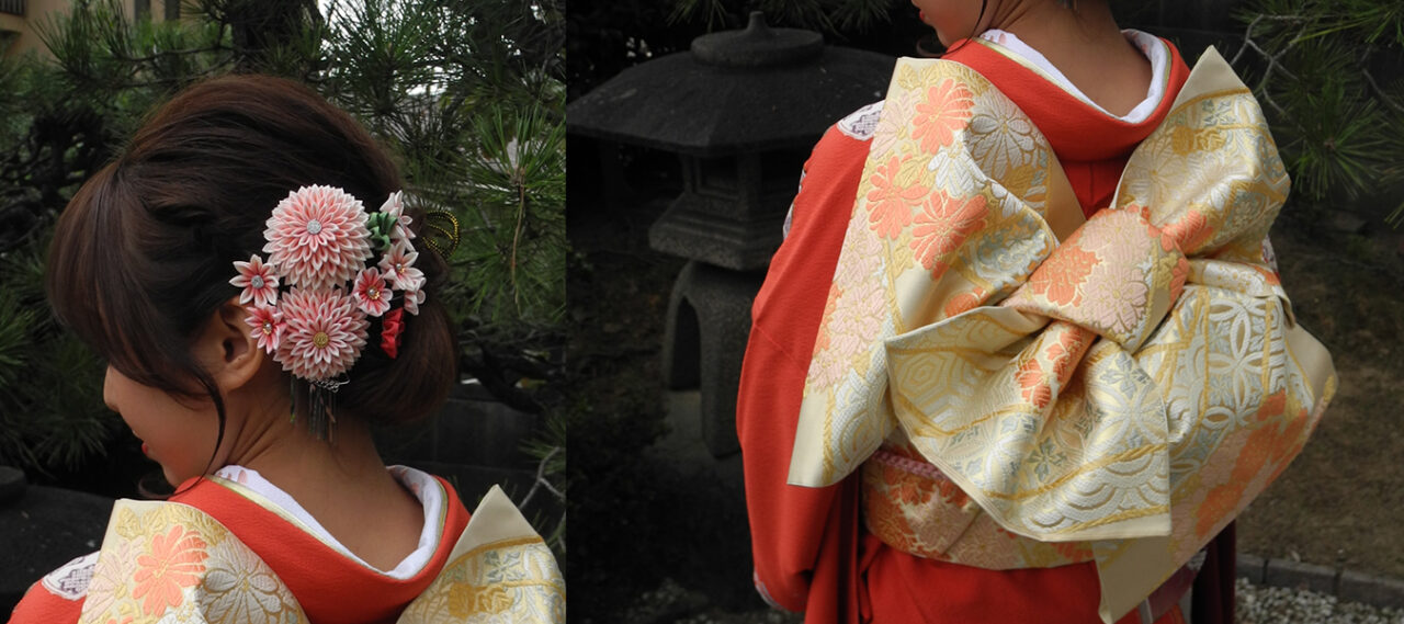 お母様の乱菊の柄のお振袖に、優しい色合いで小物をコーディネイトしていただきま... -