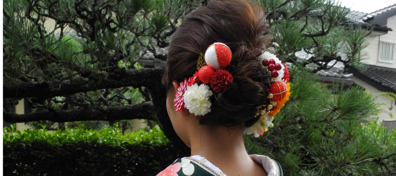 先日、前撮りにご来店いただいたお嬢様。 深緑の地色の着物に、大柄なモダンで華や... -