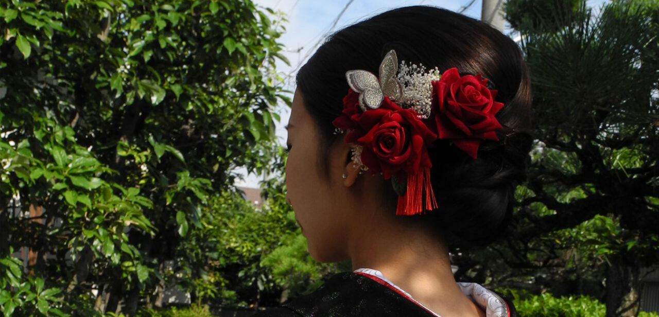 先日、前撮りにご来店頂きましたお嬢様。 黒地に赤と、白の薔薇柄のお振袖を選び、... -