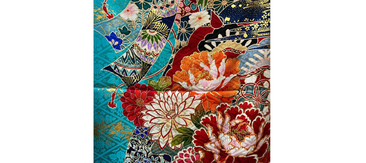 左側はターコイズ 右側はライム とっても鮮やかな地色のお振袖に、カラフルな御簾...