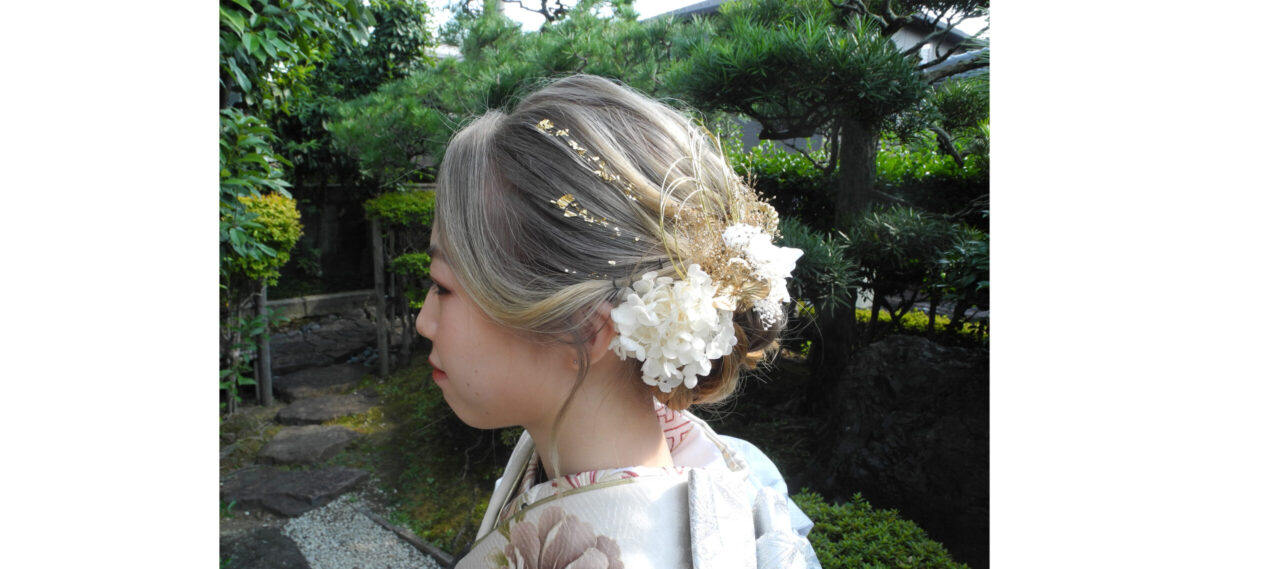 色白のお嬢様にとってもお似合いの白いお振袖。 髪色も、お振袖にピッタリですね... -