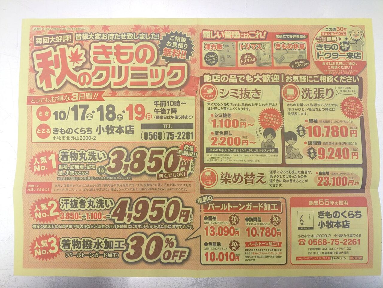 秋のきものクリニック 年内クリーニングするなら今がチャンス! 皆様こんにちは。... -