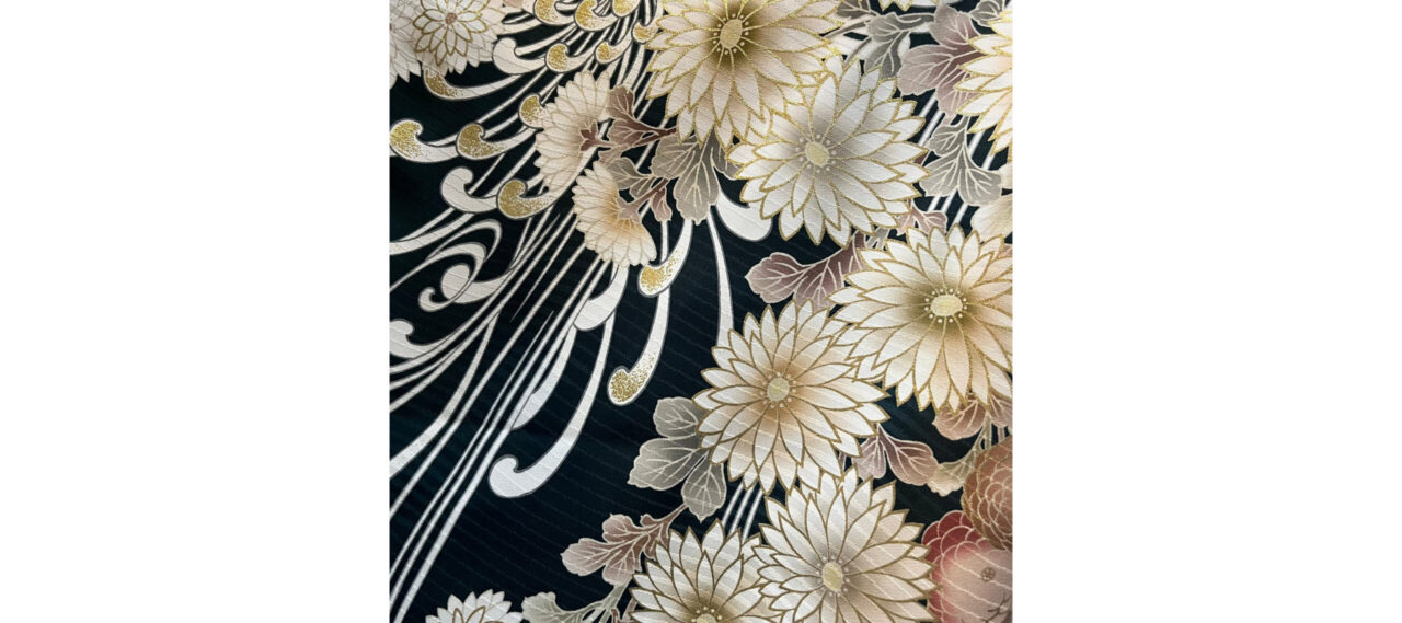 振袖コーデ(黒緑に菊・菊・菊)