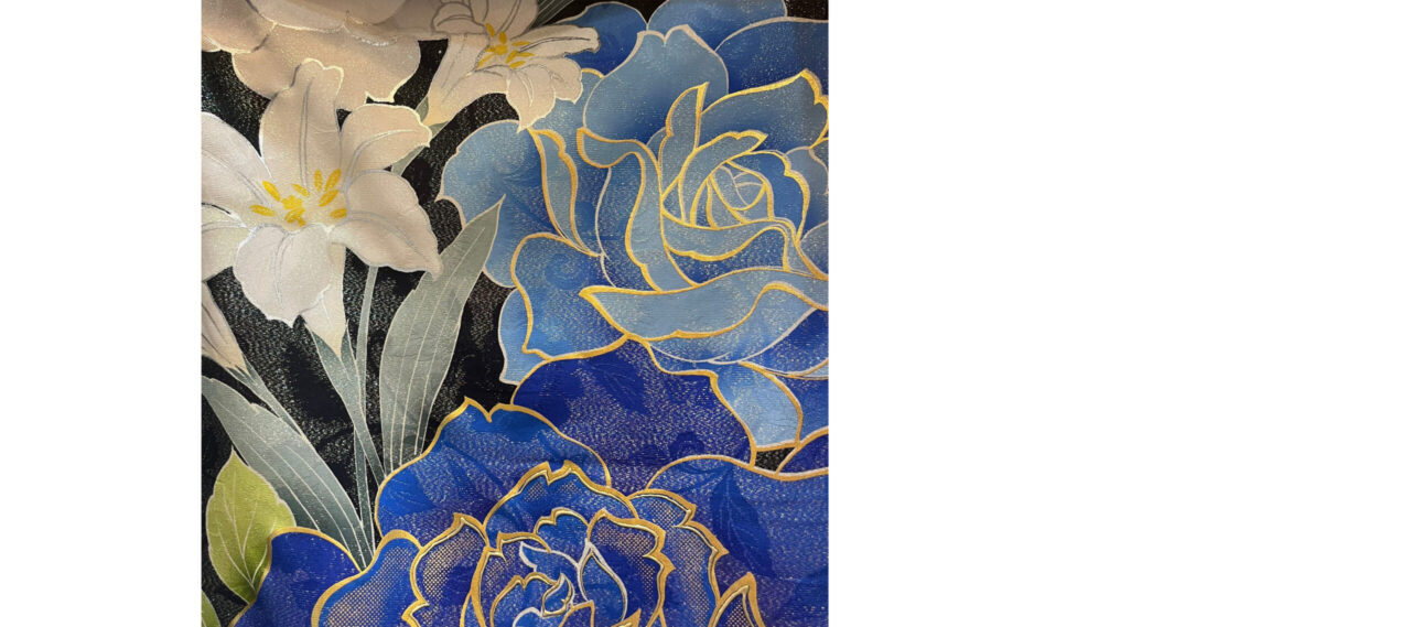 黒のラメ入りの生地に大きな青いバラと百合がインパクト大。 最近はバラ柄が好きな... -