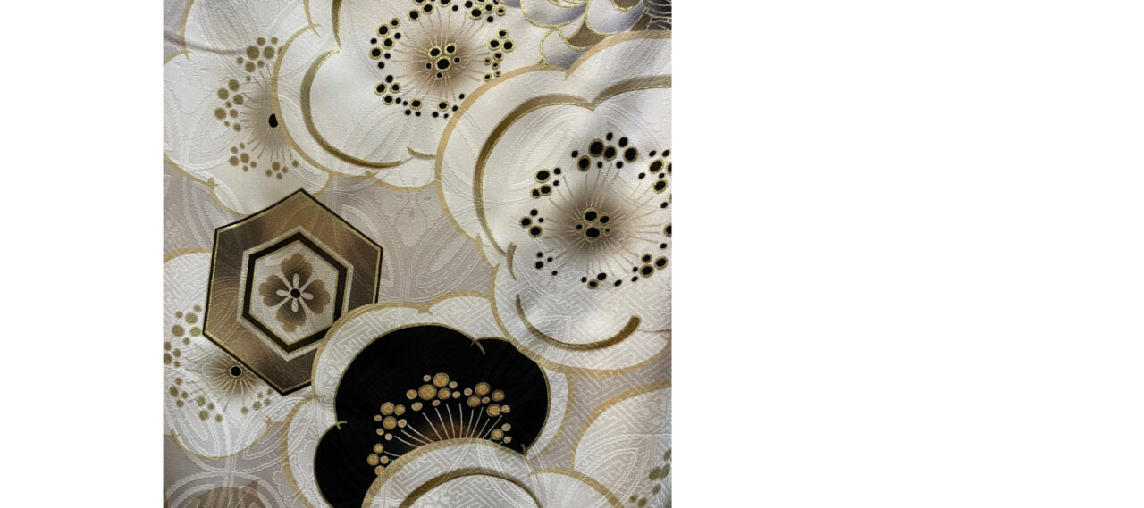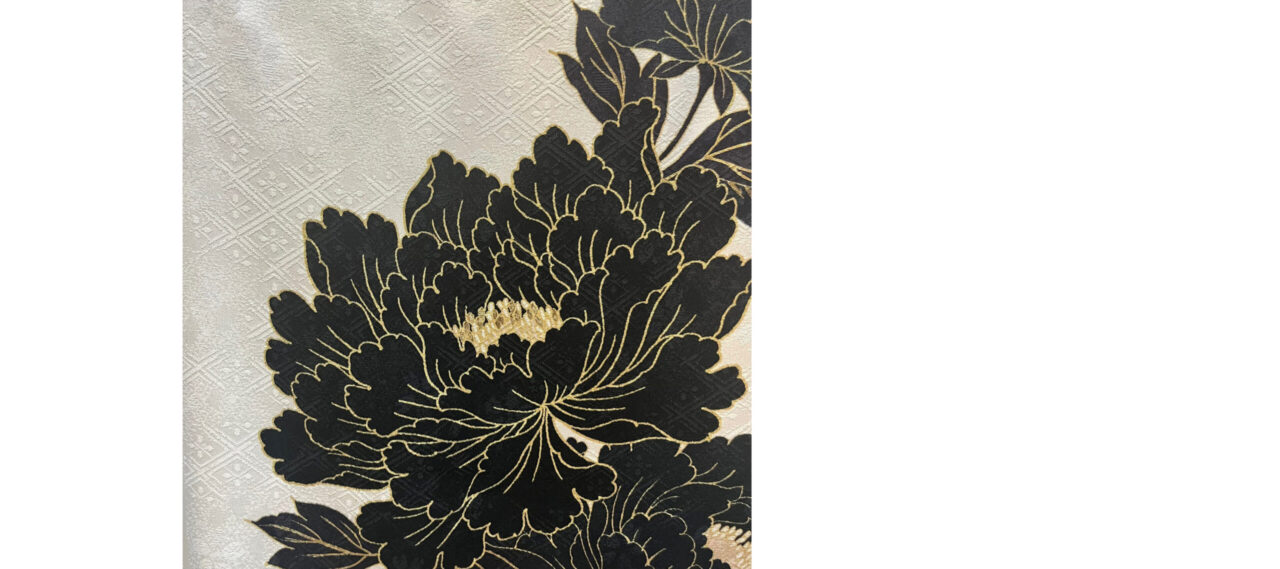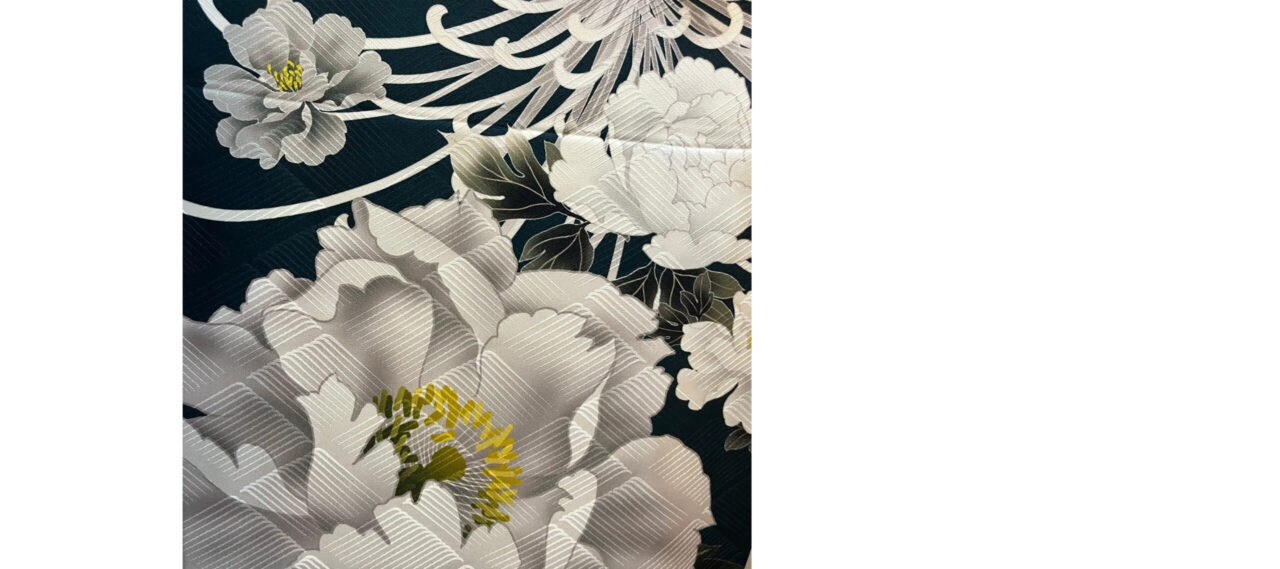 このお振袖、着物を広げただけでは、わかりにくい。 というのも、着物に黒と紺で描... -