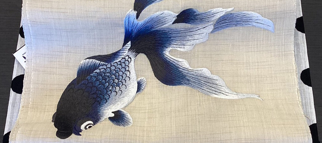 紺の金魚が涼やかな名古屋帯。 金魚の浴衣も誉田屋源兵衛さんでは定番柄で有名です...