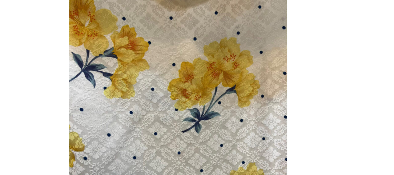 かなり珍しい絵付けのお振袖。ワンピースの柄のようですが、ちゃんと絵羽模様(柄... -