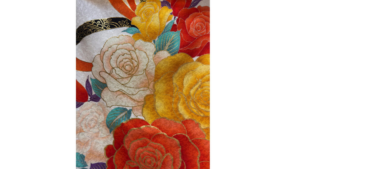 振袖コーデ 白地に黄色やオレンジ、白薔薇