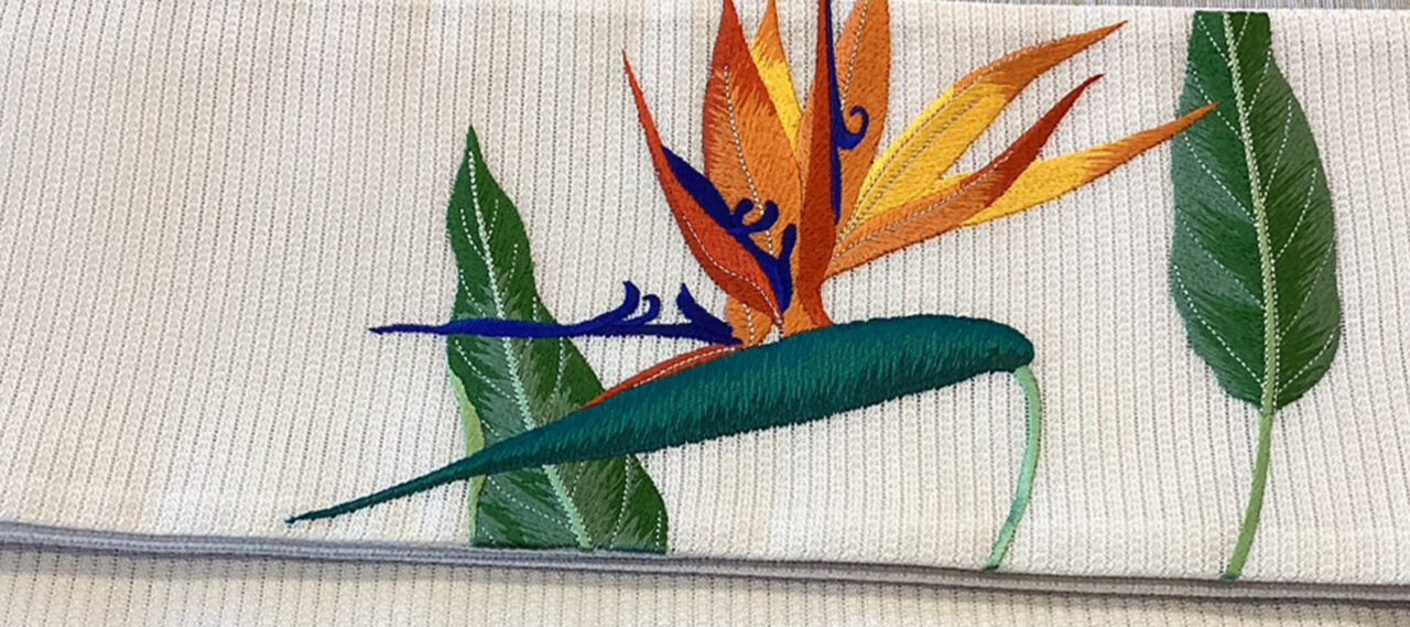 夏の半幅帯 極楽鳥花(ストレリチア)