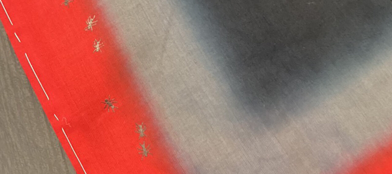 絵羽の仮仕立てがしてあります浴衣。 おくみ、裾と赤い染めの上に蟻が10匹。 背... -