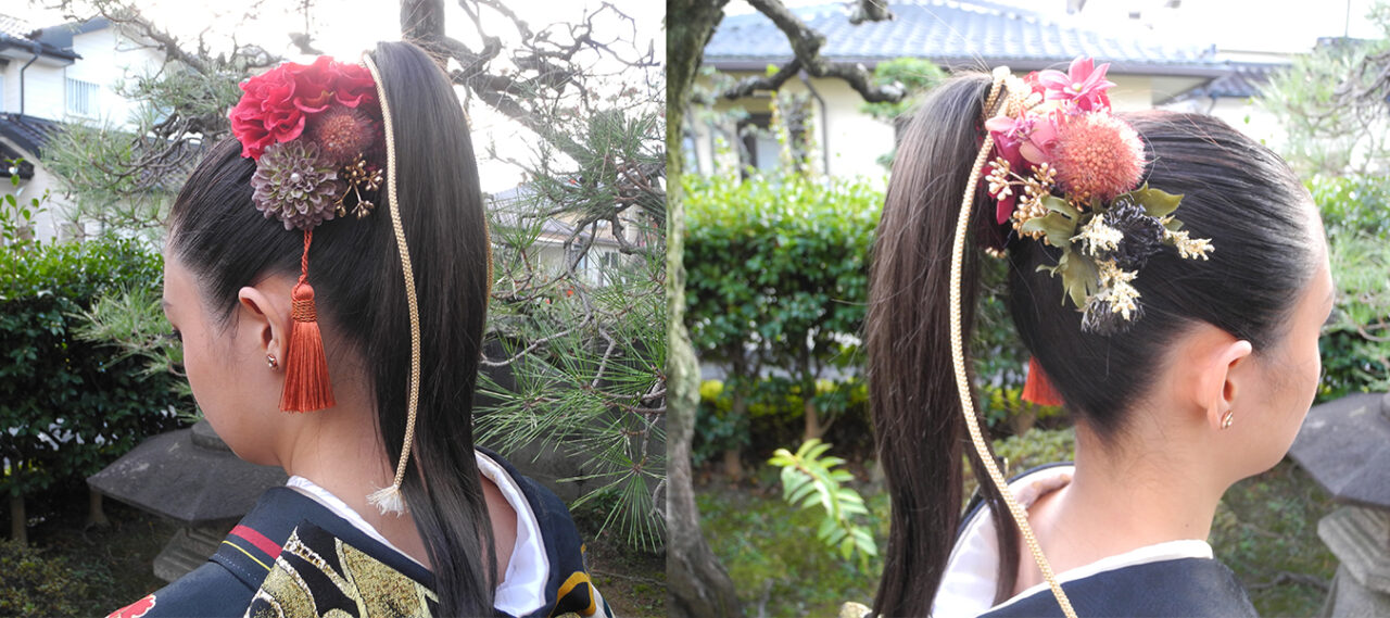 8歳年上のお姉さまの購入したお振袖で、前撮り撮影にご来店頂いたお嬢様。 髪飾の... -