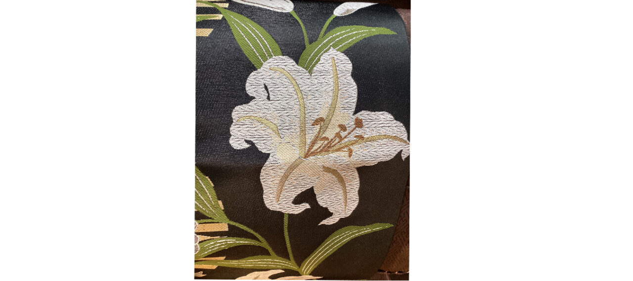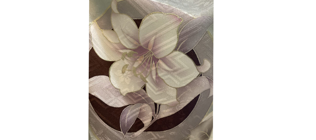 以前もご紹介したお振袖に、とっても良く似合う百合の花の帯が入荷したので、思わ... -