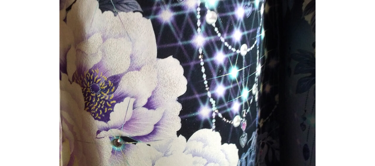 黒地に紫系の花が描かれていると、カッコイイ感じのコーディネイトになりがちでし... -